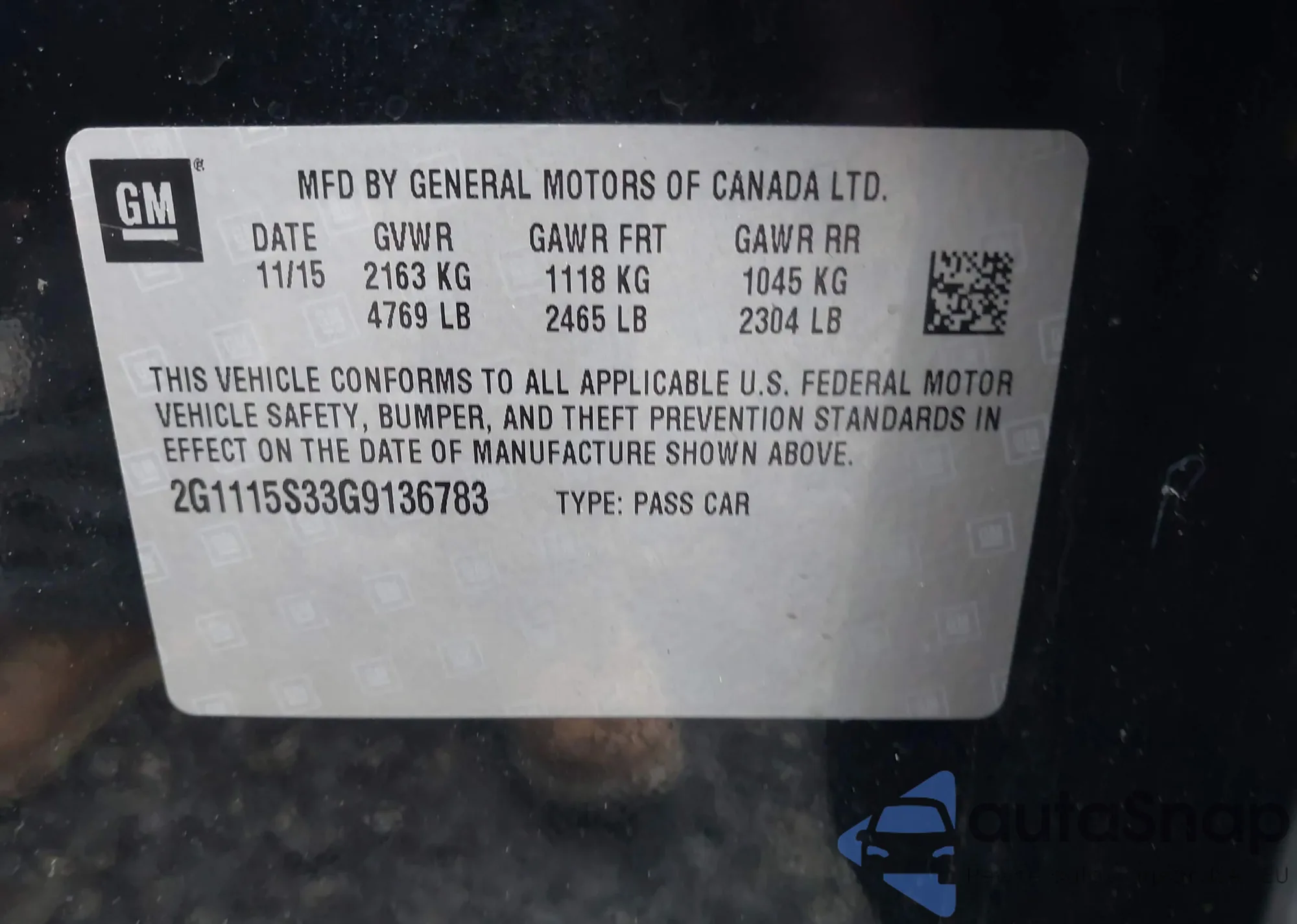 • VIN 2G11X5SL1F9247443