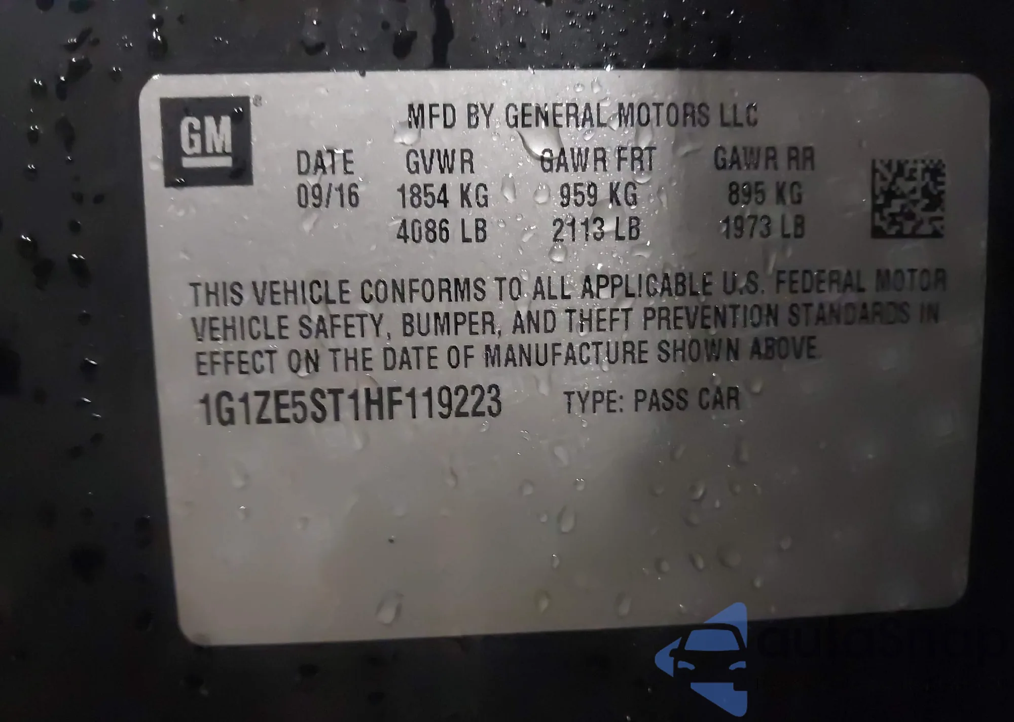 • VIN 1G1ZE5ST0HF149958
