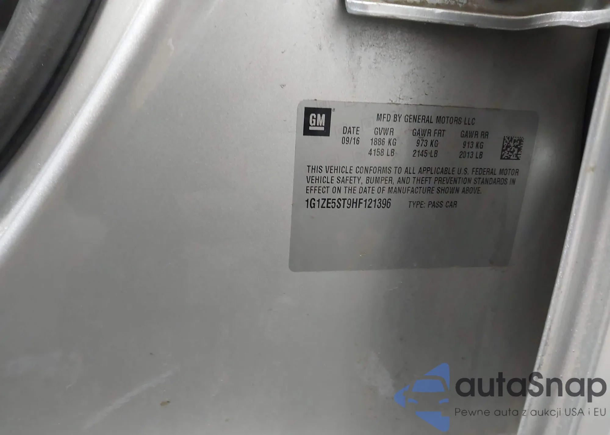 • VIN 1G1ZE5ST9HF121396
