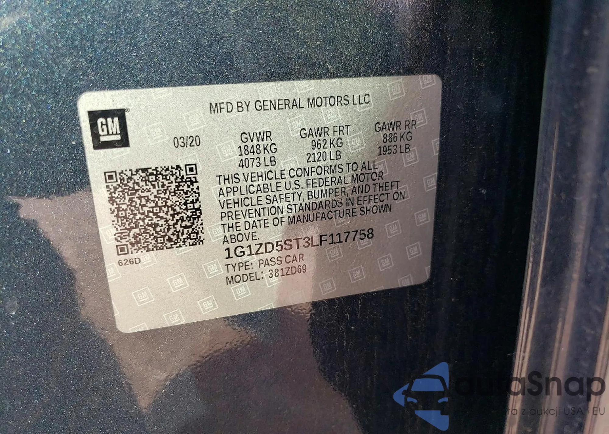 • VIN 1G1ZG5ST6LF130480