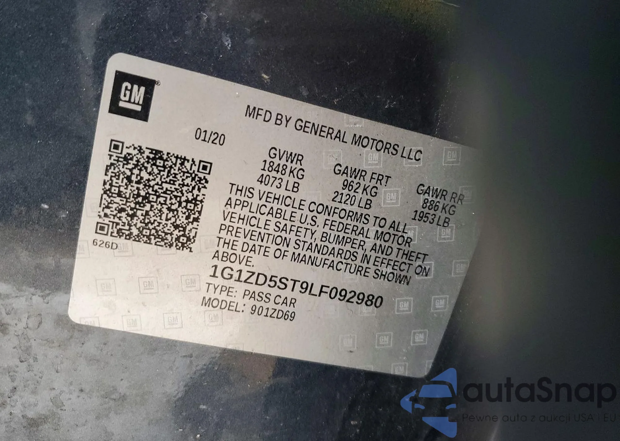 • VIN 1G1ZD5ST9LF092980