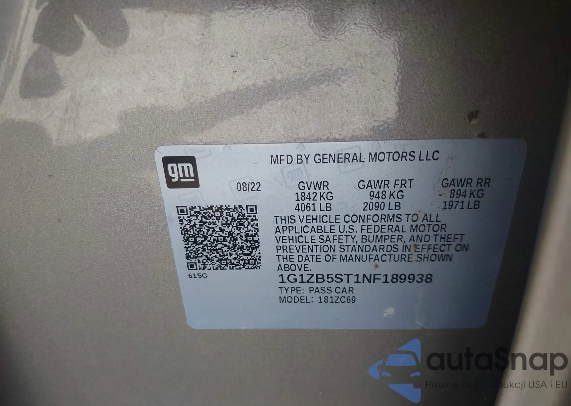 LOT: 43311690 VIN: 1G1ZB5ST1NF189938