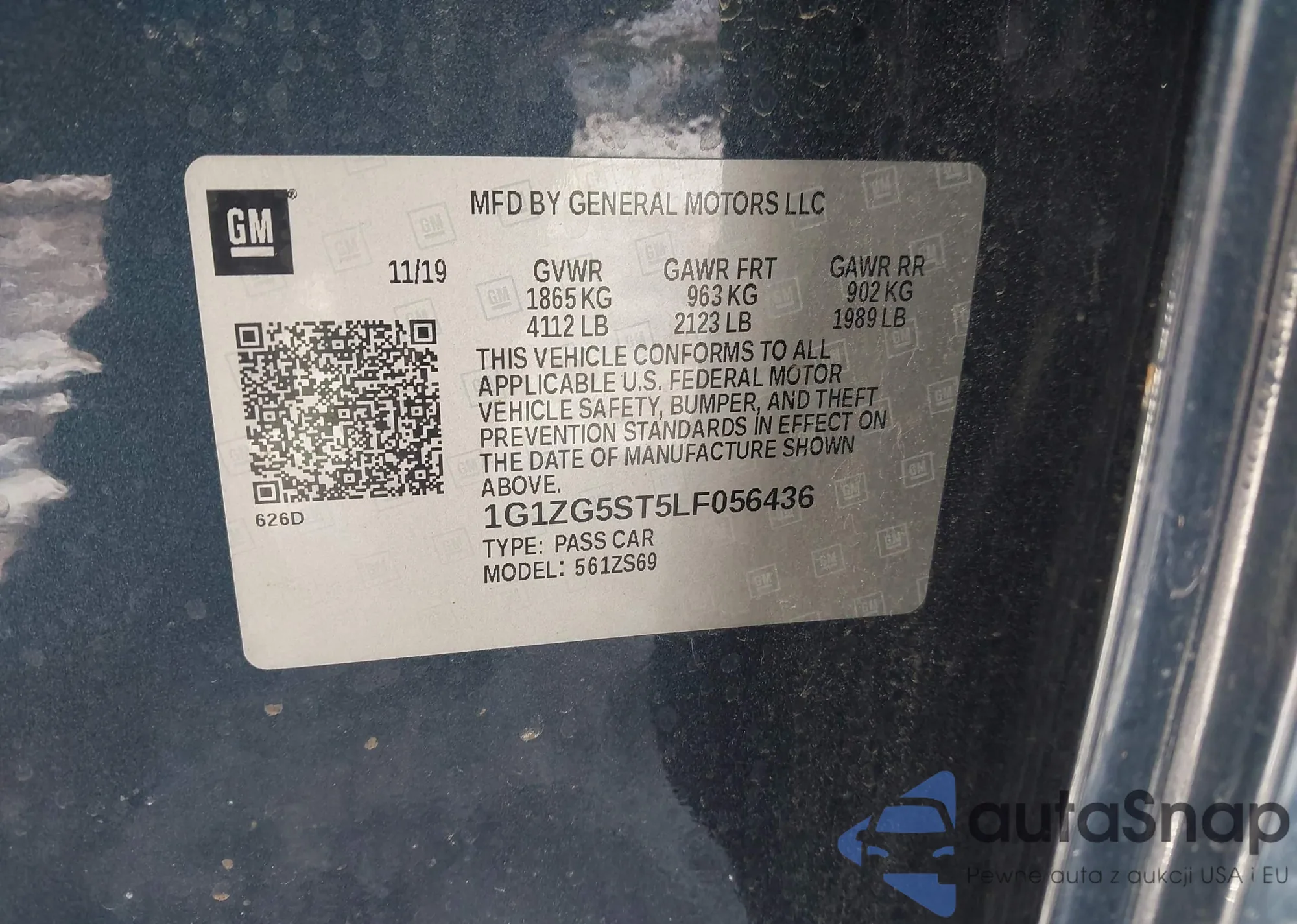 • VIN 1G1ZG5ST5LF056436