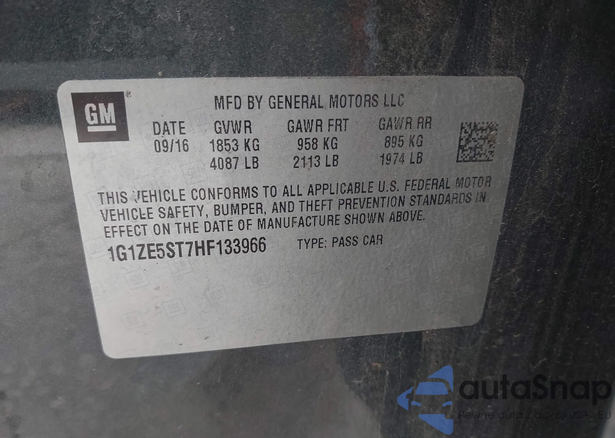 • VIN 1G1ZE5ST7HF133966