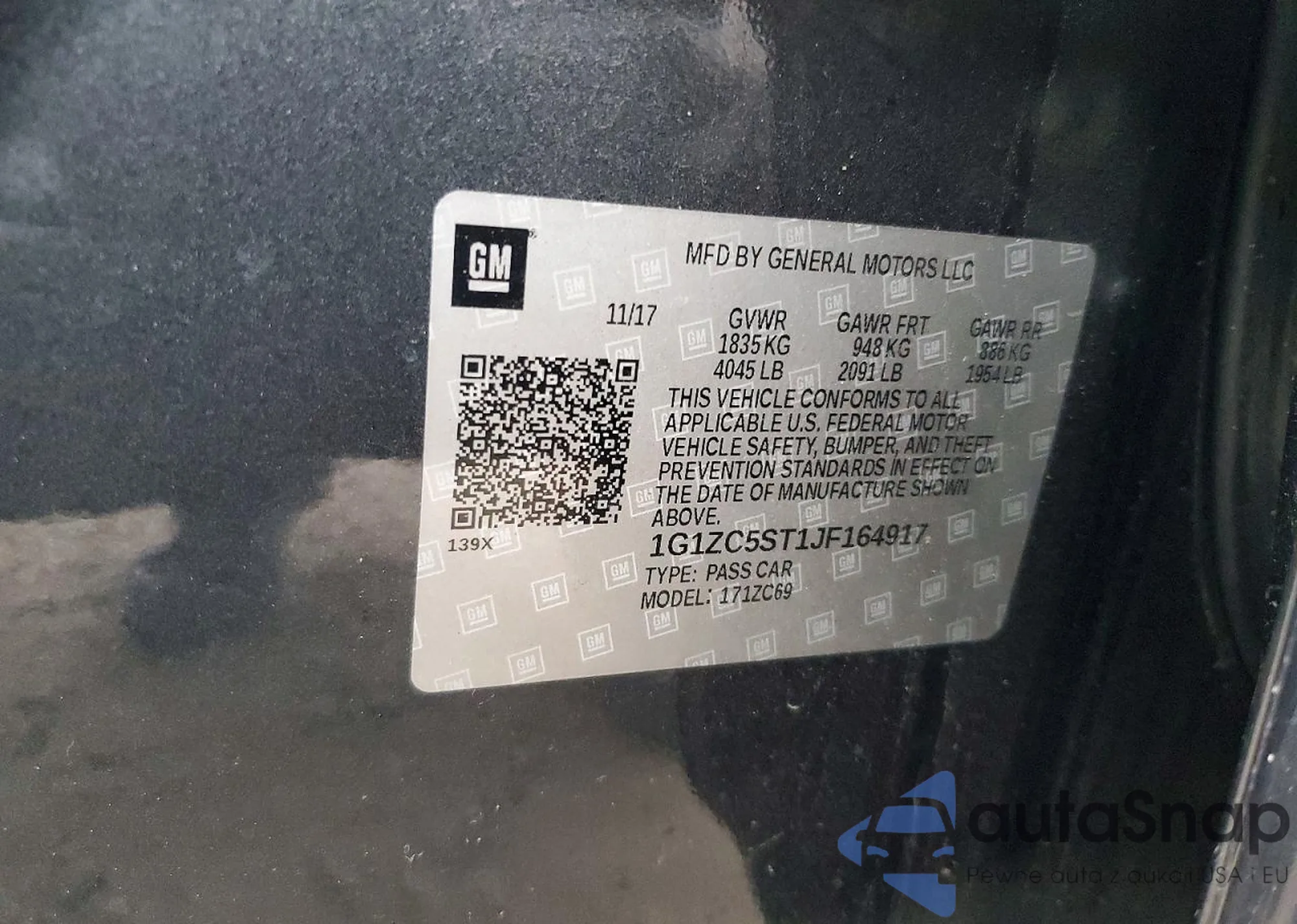 • VIN 1G1ZC5ST1JF164917