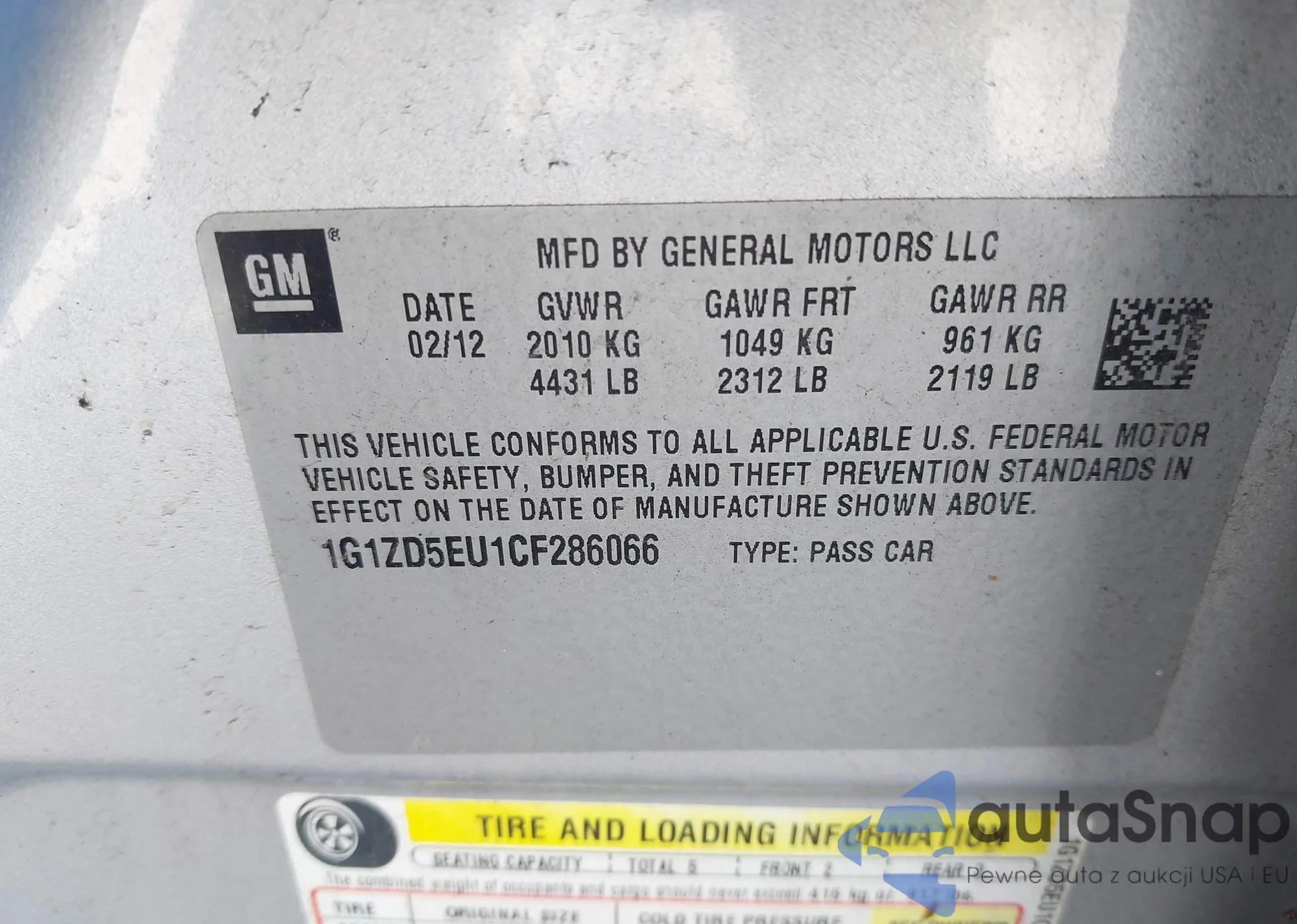 • VIN 1G1ZD5EU1CF286066