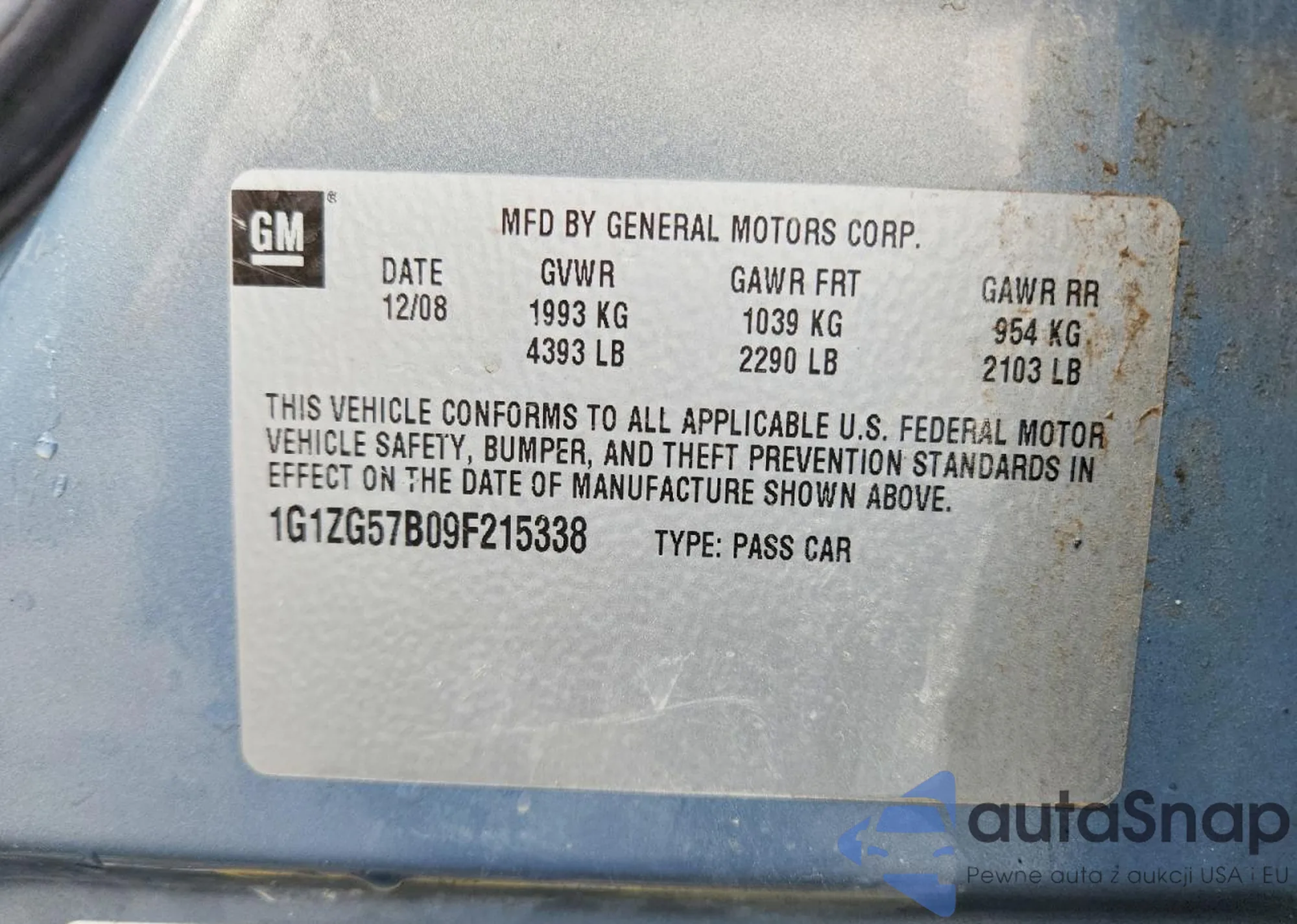 • VIN 1G1ZG57B09F215338