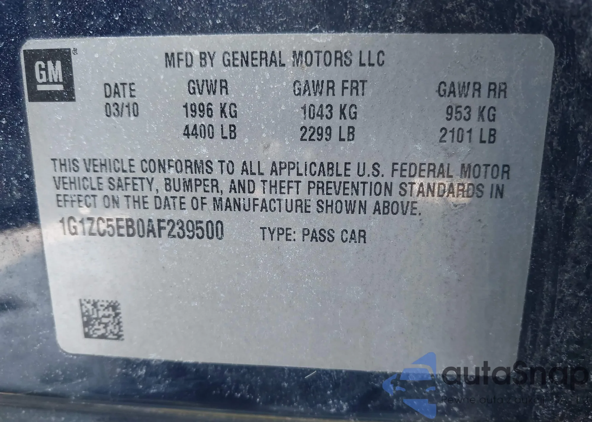 LOT: 44365150 VIN: 1G1ZC5EB0AF239500