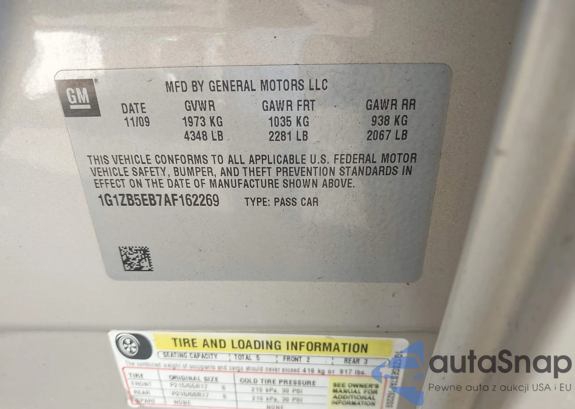 • VIN 1G1ZB5EB7AF162269