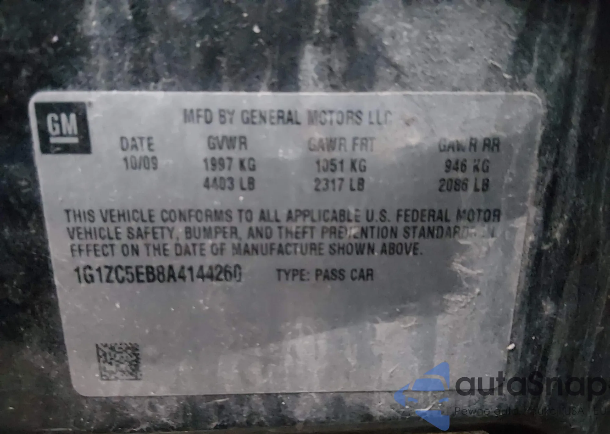 • VIN 1G1ZC5E09AF191946