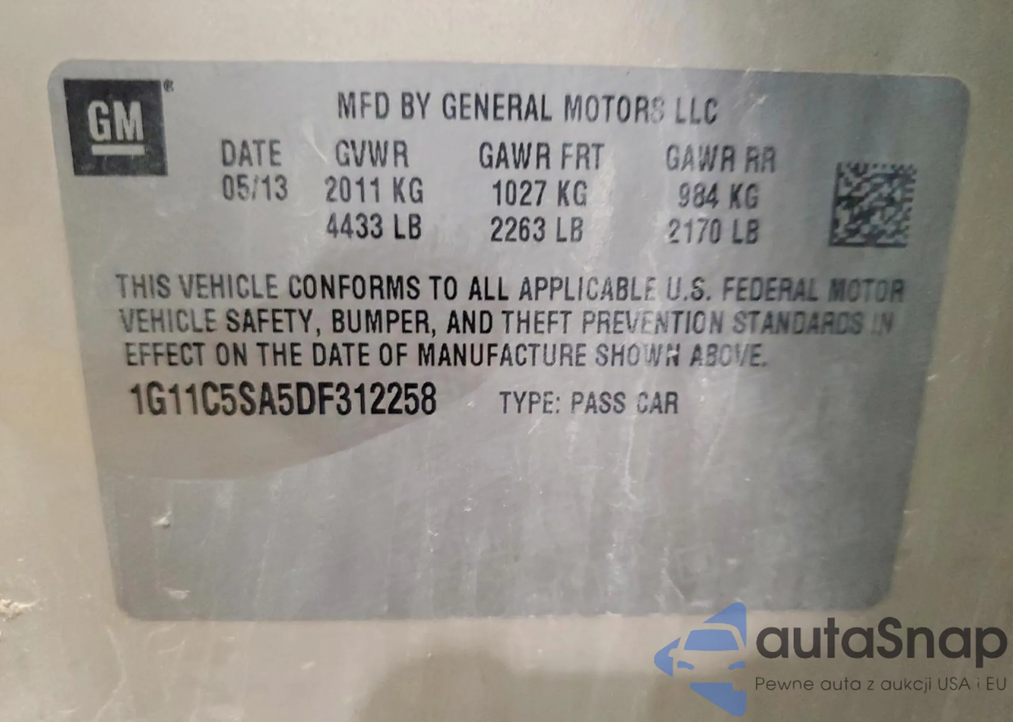 LOT: 99840255 VIN: 1G11C5SA5DF312258