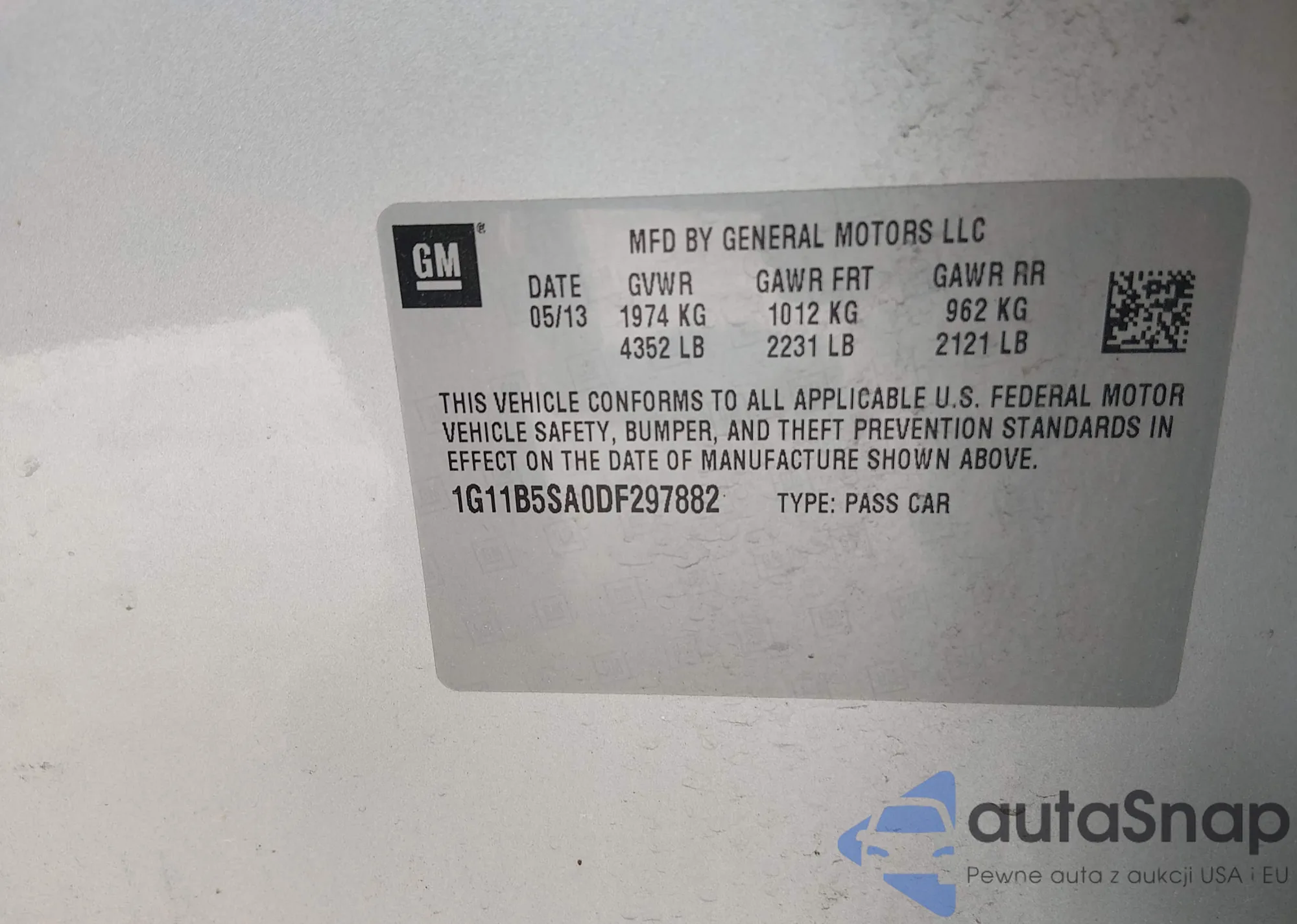 LOT: 44370964 VIN: 1G11B5SA0DF297882