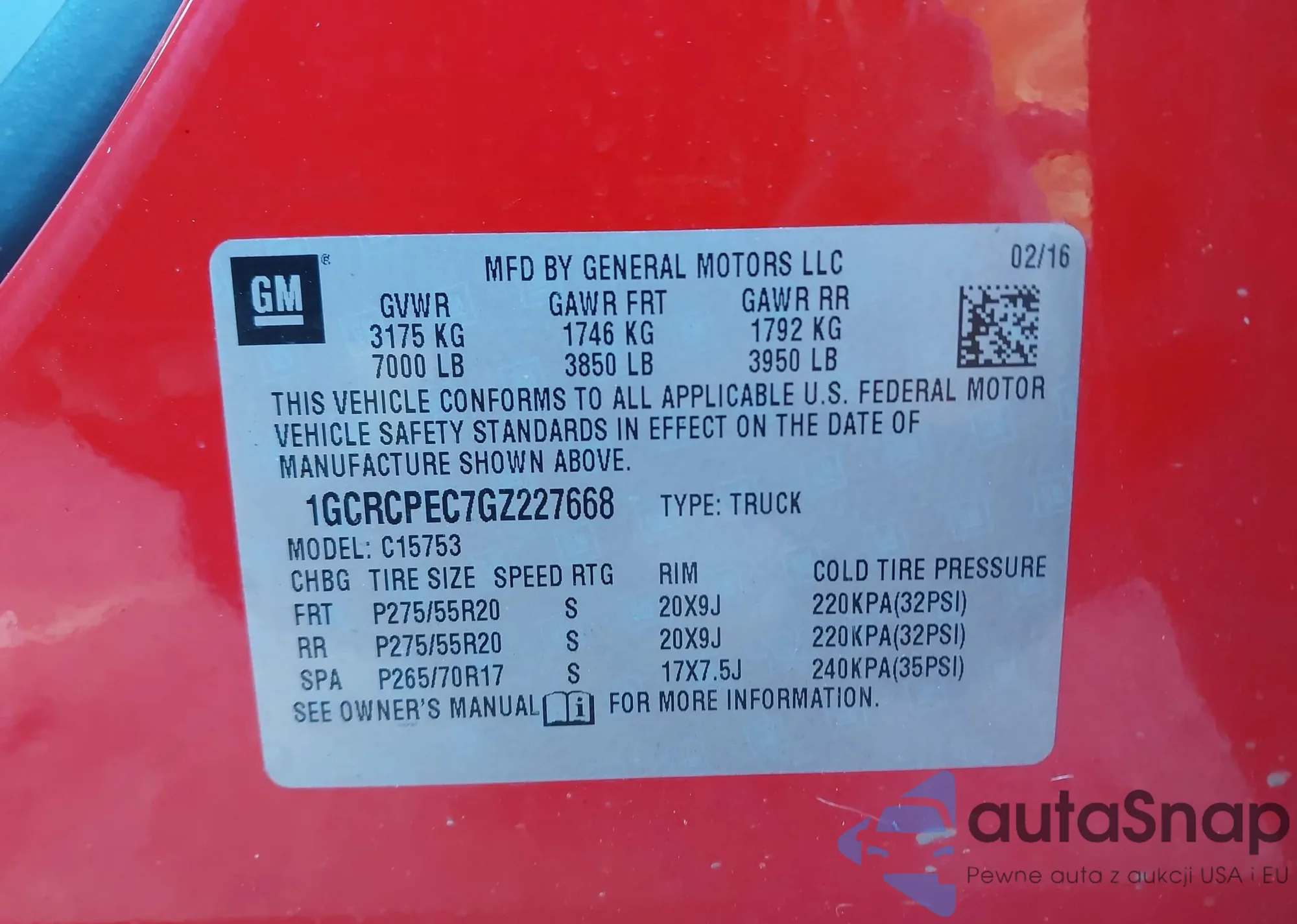 LOT: 43982038 VIN: 1GCRCPEC7GZ227668