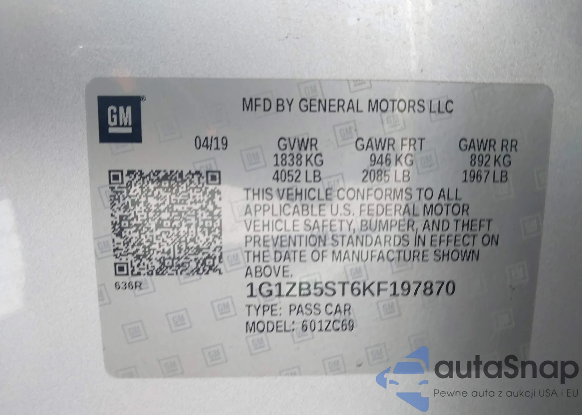 • VIN 1G1ZB5ST6KF197870