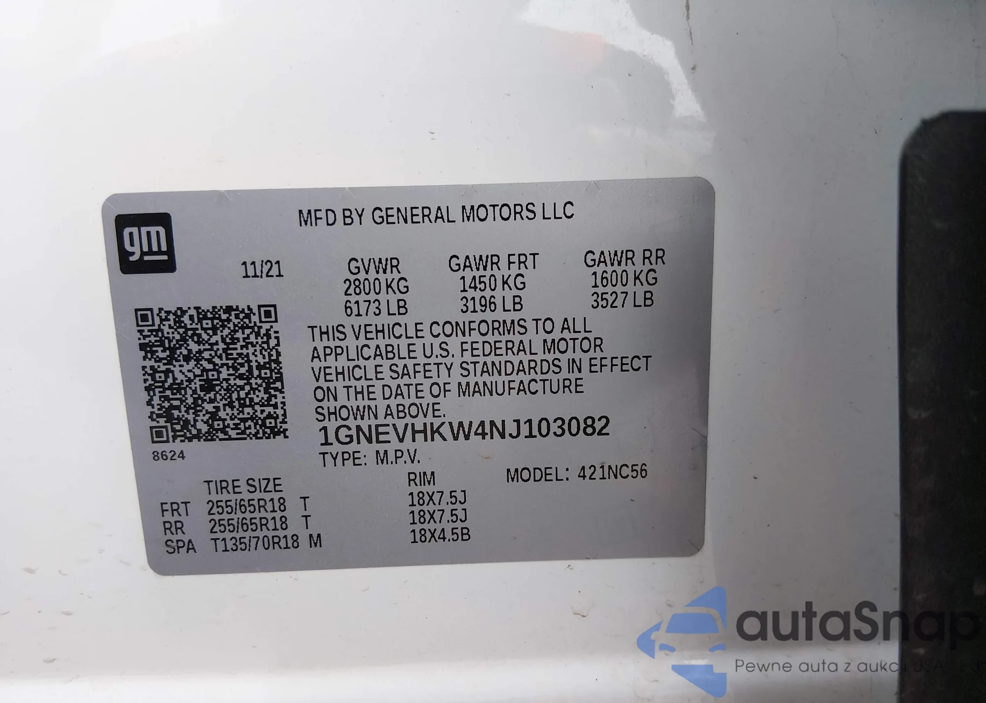 • VIN 1GNEVHKW4NJ103082