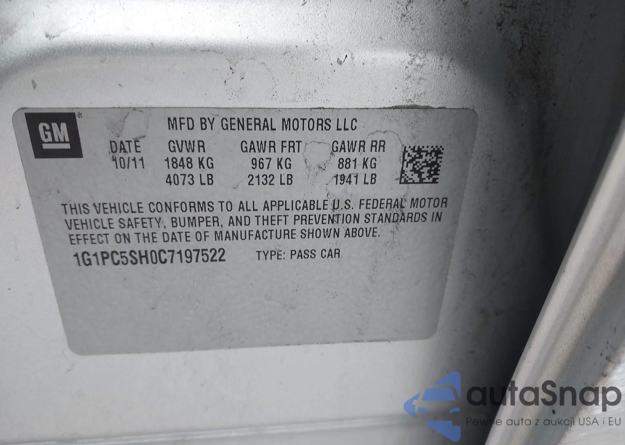 LOT: 44400948 VIN: 1G1PC5SH0C7197522