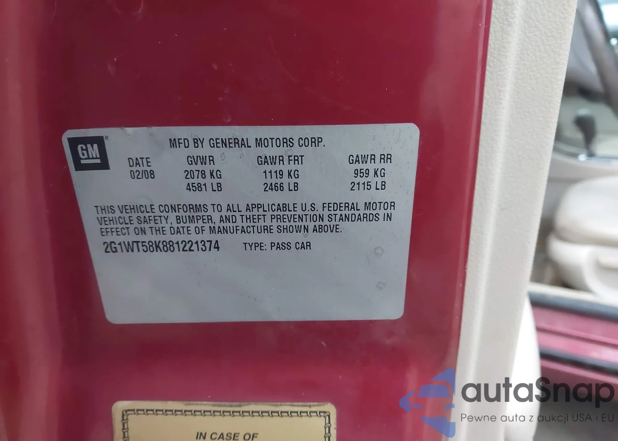 • VIN 2G1WT58K881221374