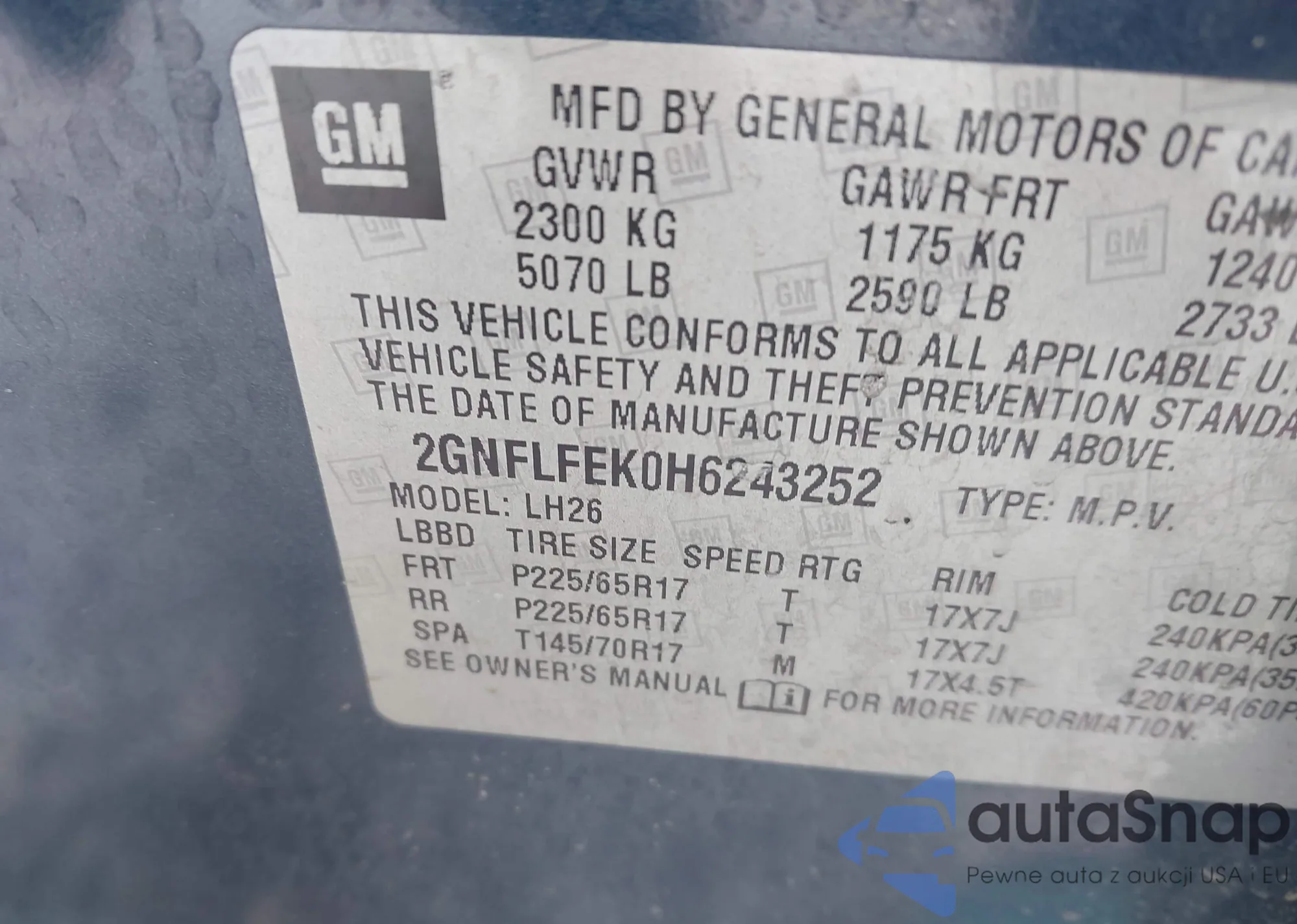 • VIN 2GNFLFEK0H6243252