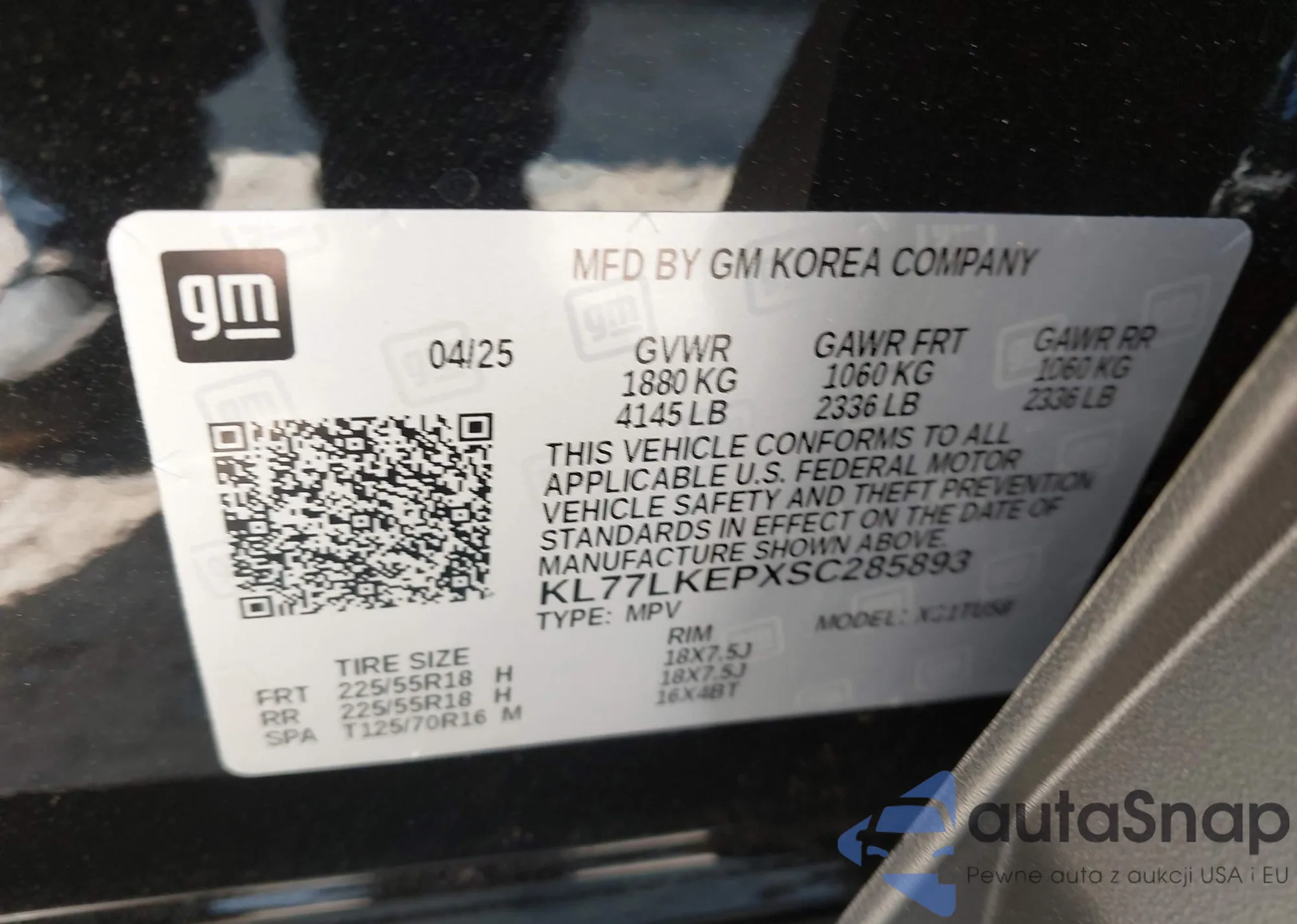 • VIN KL77LKEPXSC285893