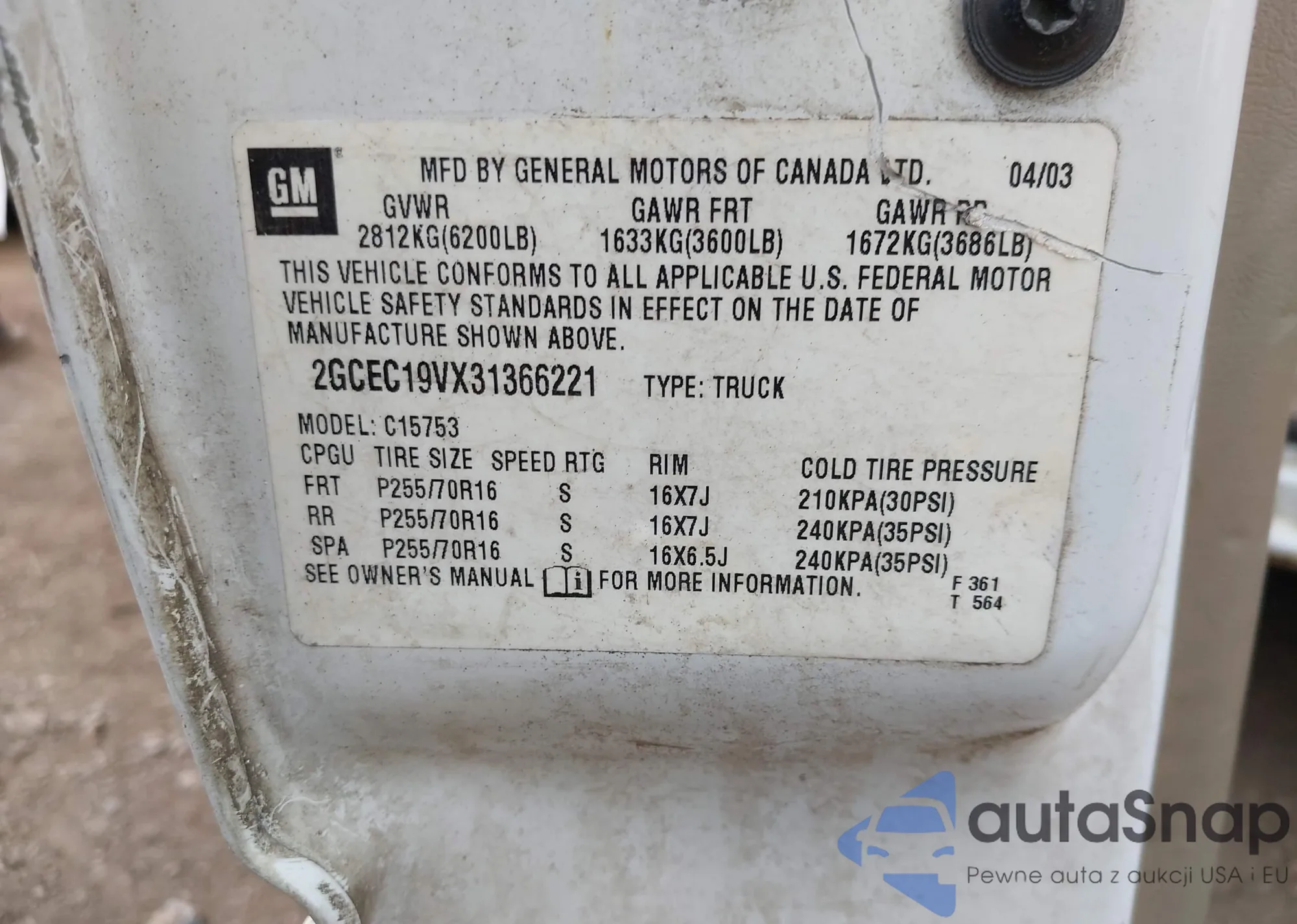• VIN 2GCEC19VX31366221