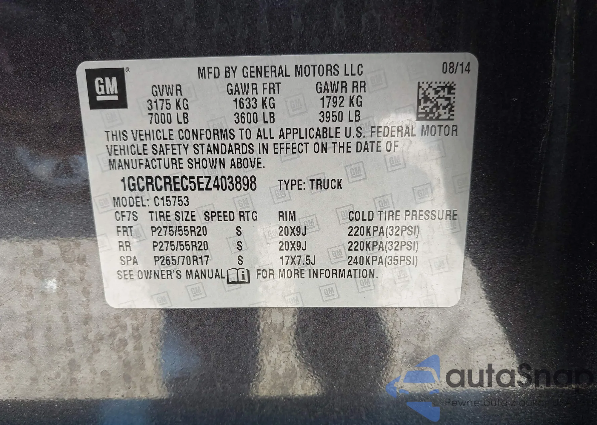 • VIN 1GCRCREC5EZ403898