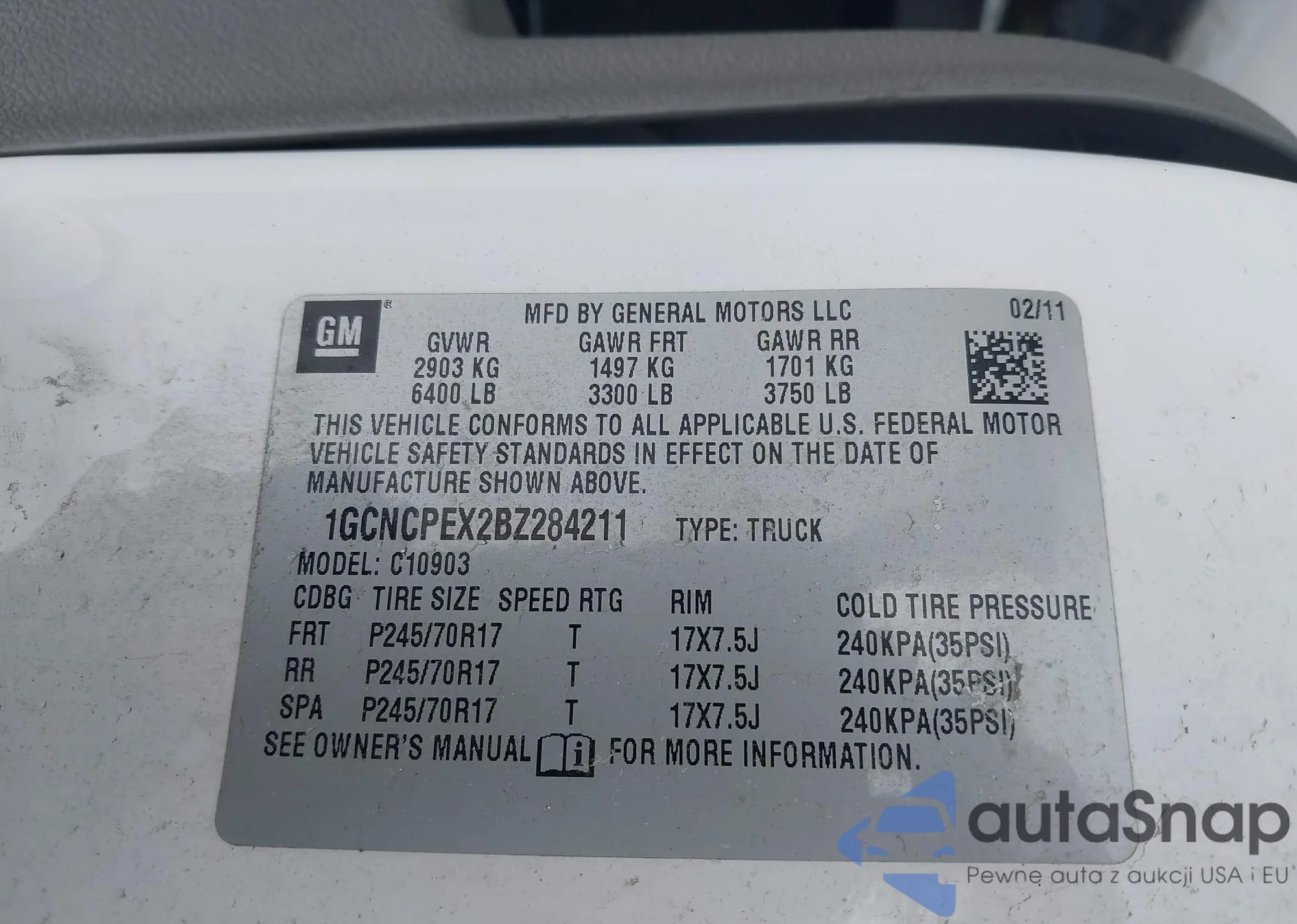 • VIN 1GCNCPEX2BZ284211