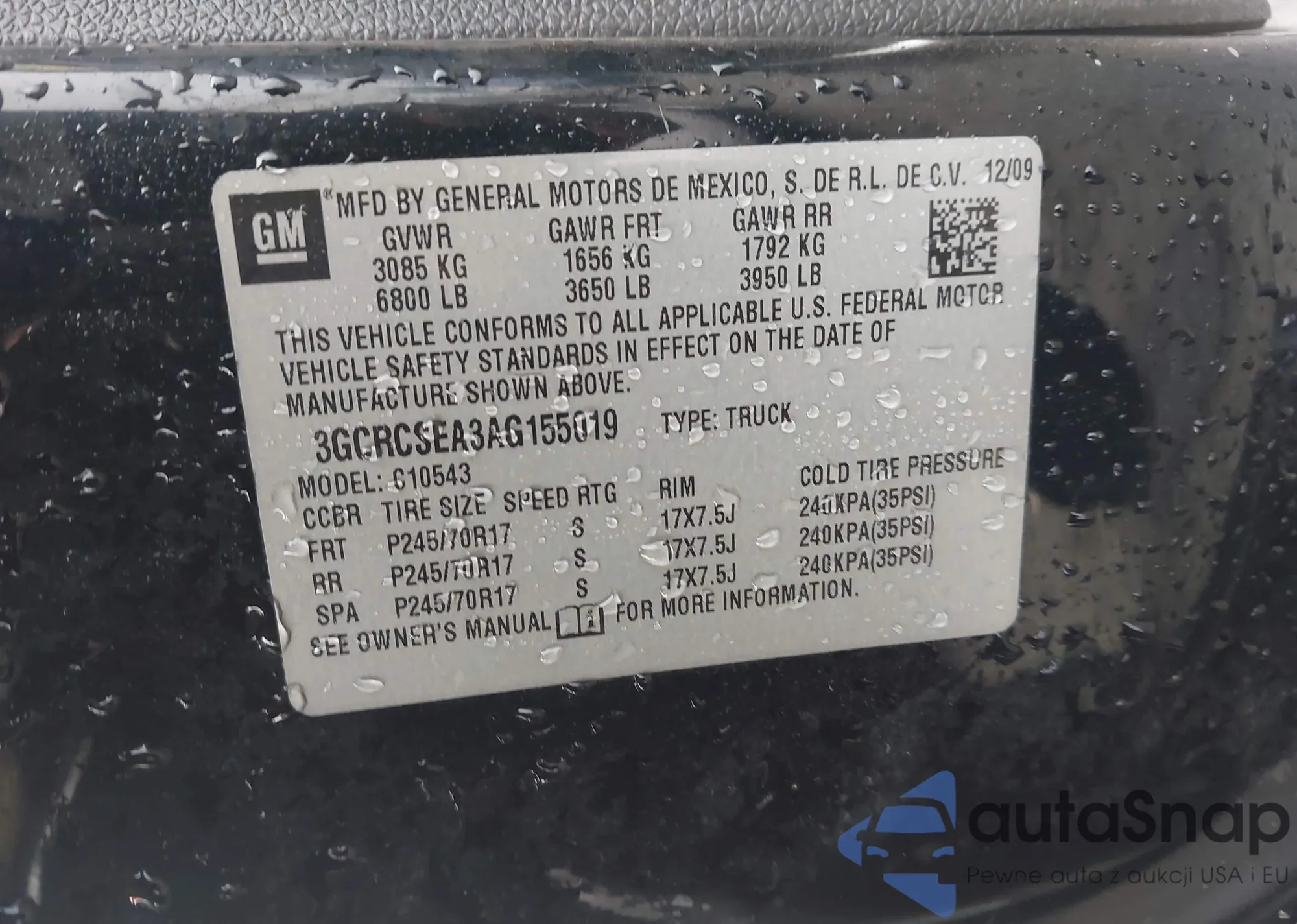 • VIN 3GCRCSEA3AG155019