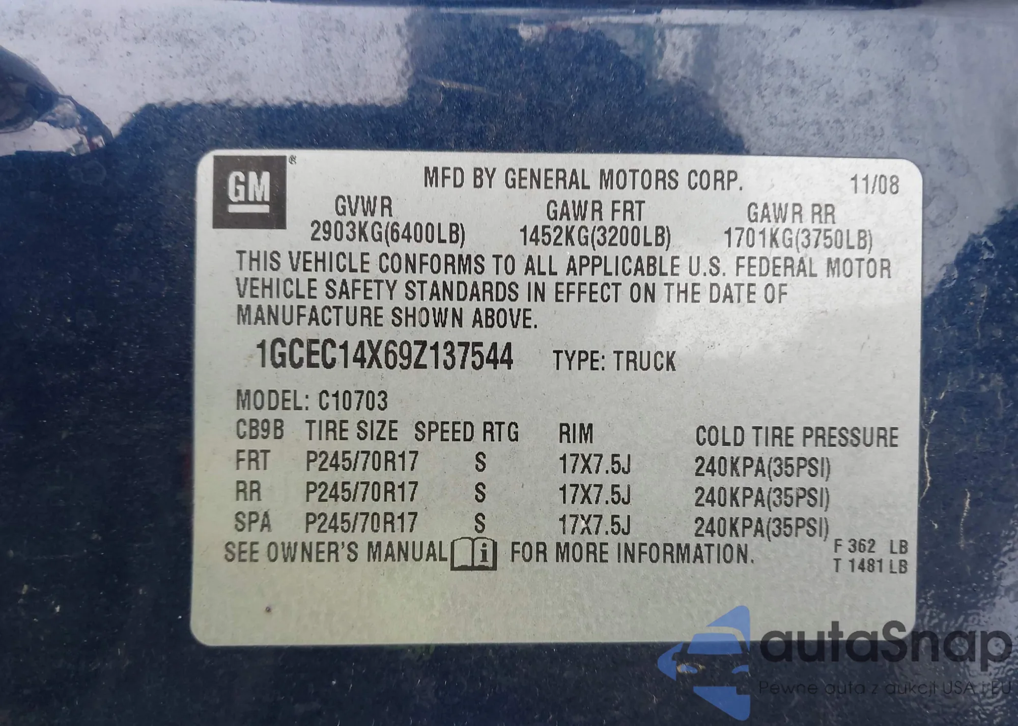 • VIN 1GCEC14X69Z137544