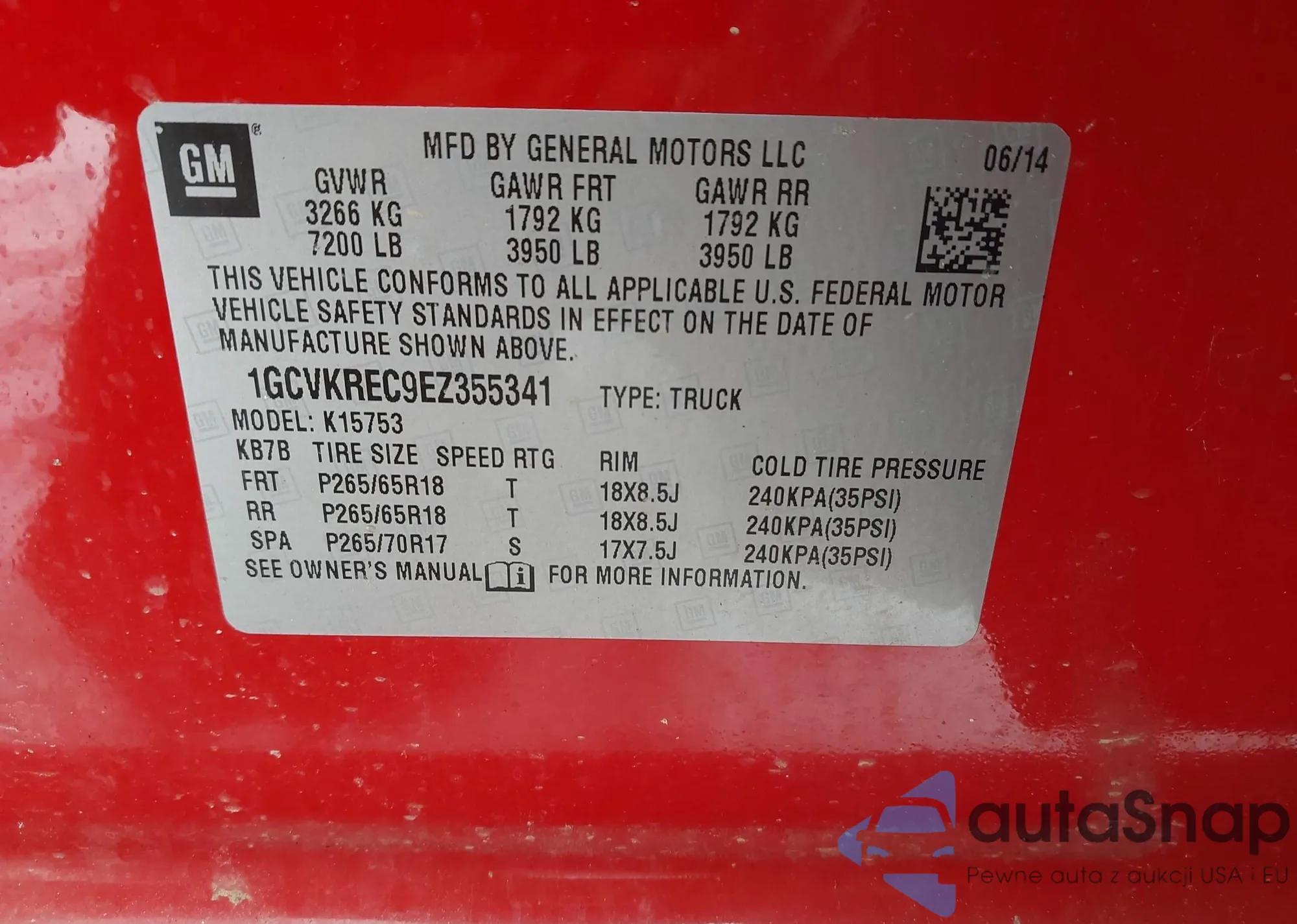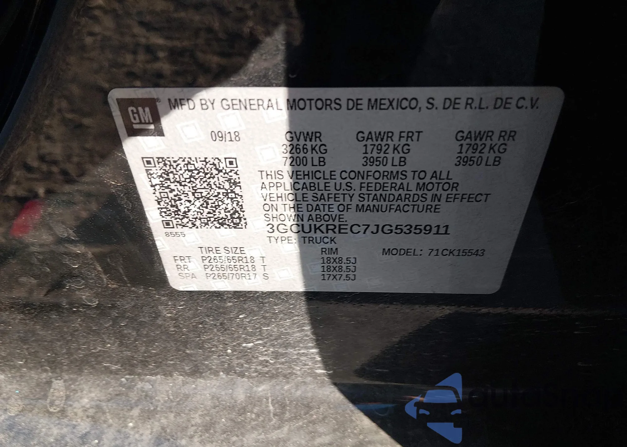 • VIN 3GCUKREC7JG535911
