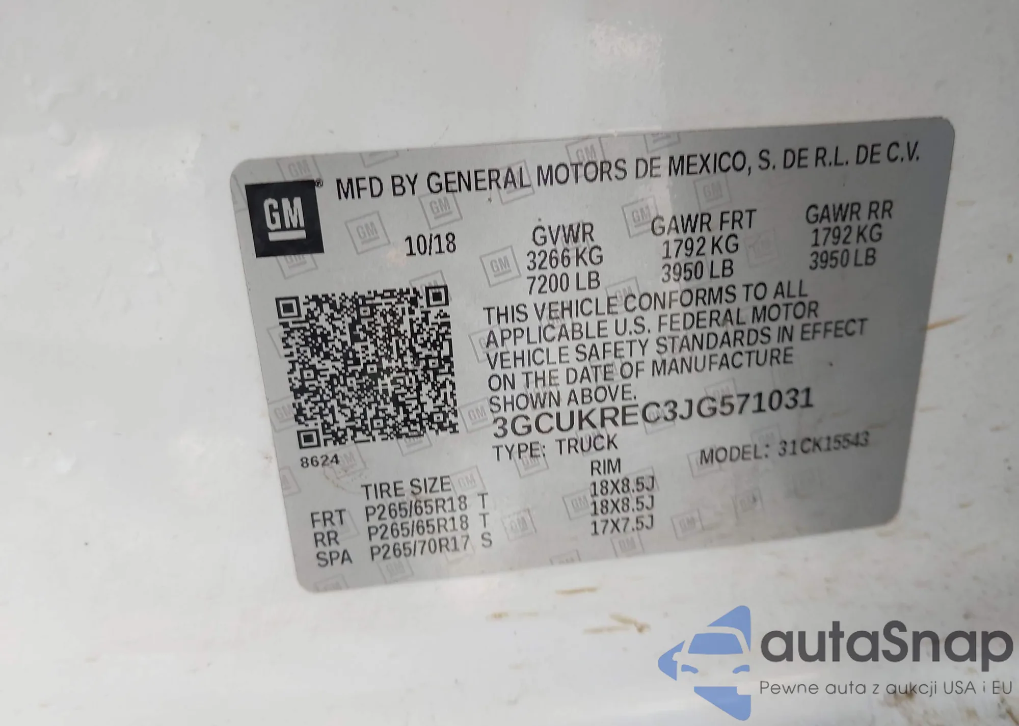 • VIN 3GCUKREC3JG571031