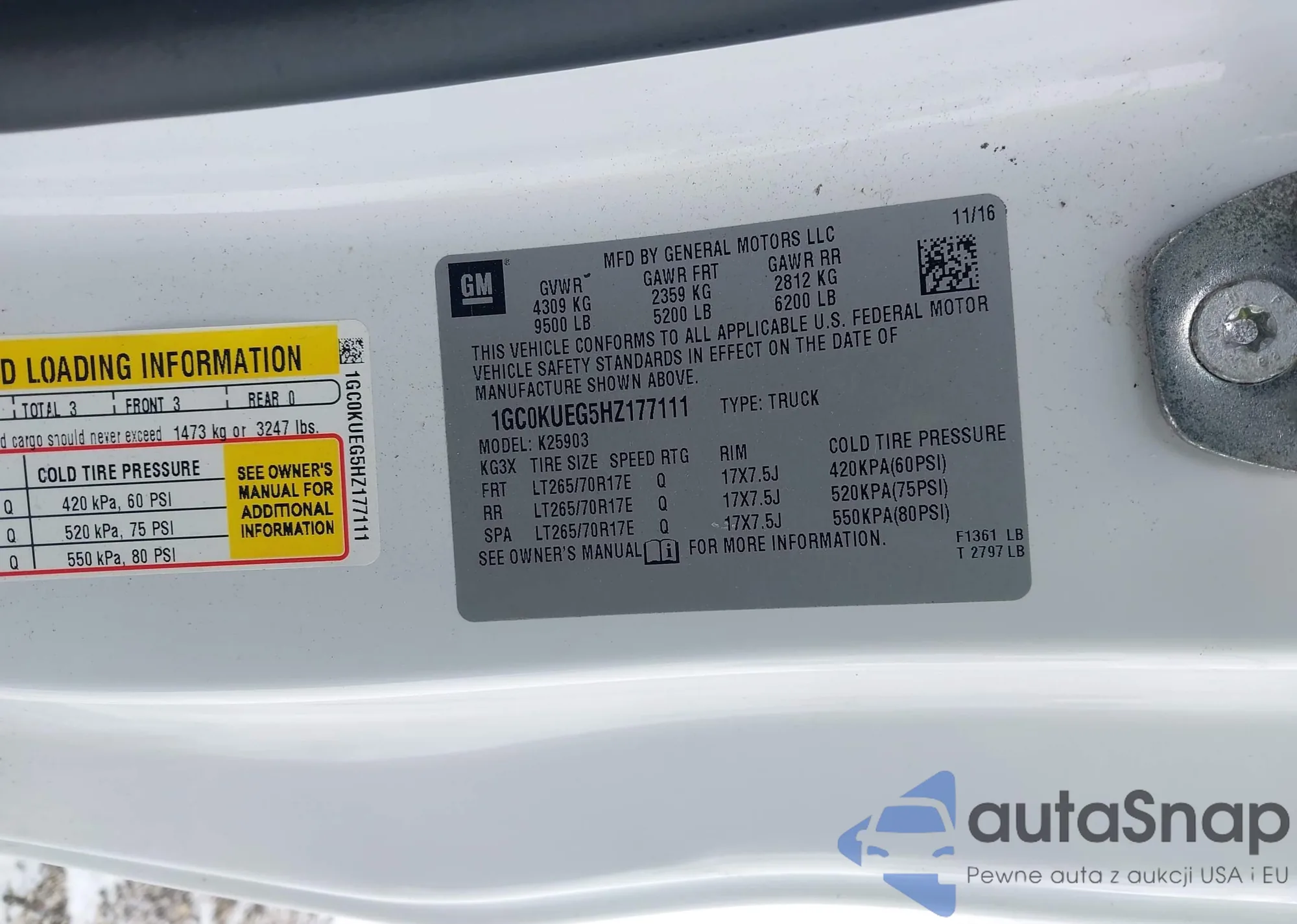• VIN 1GC0KUEG5HZ177111