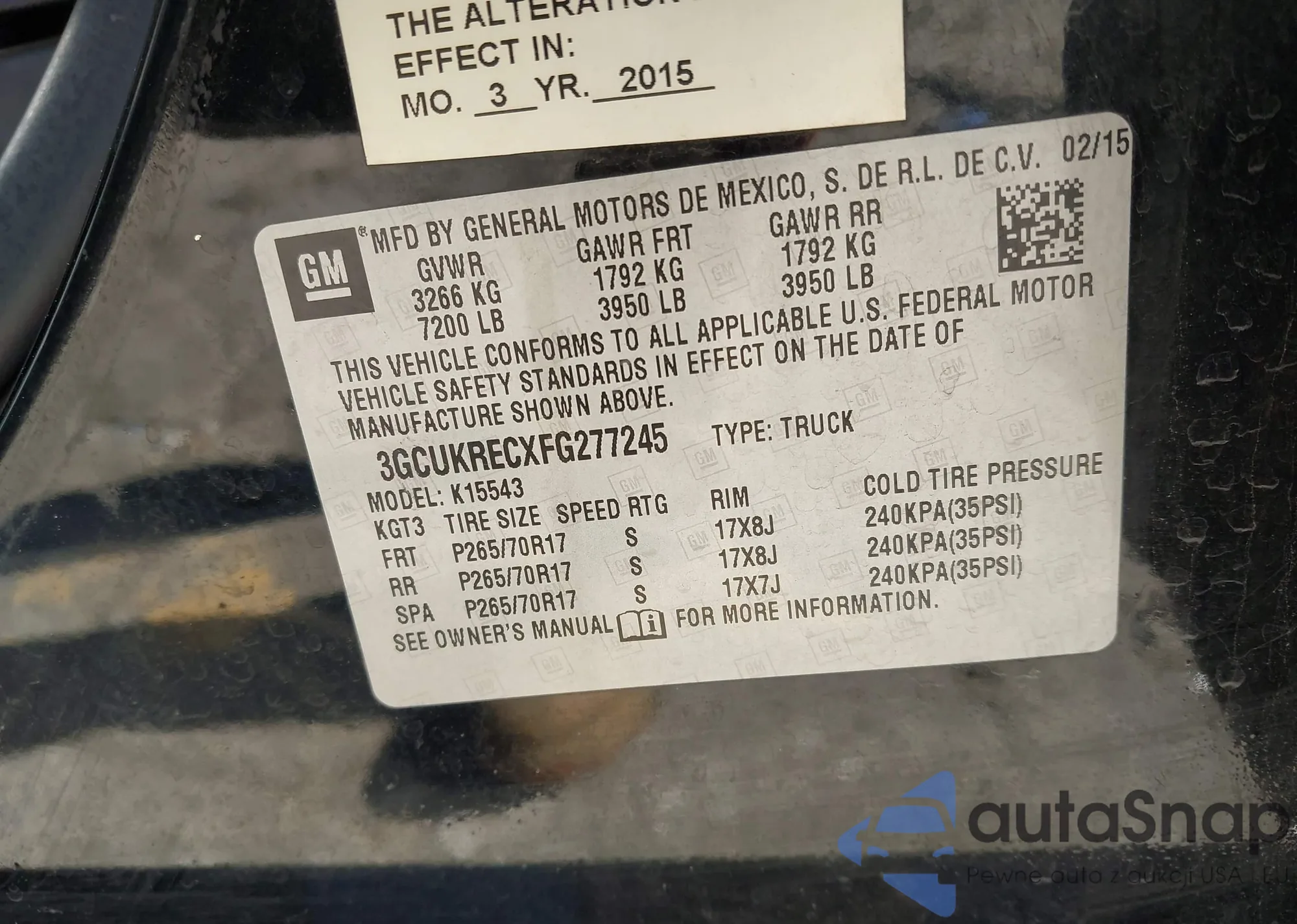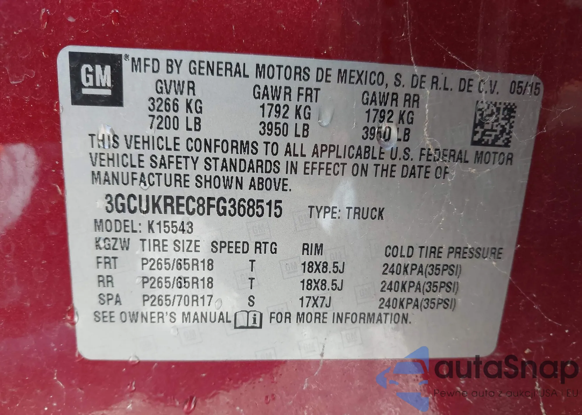 • VIN 3GCUKREC8FG368515