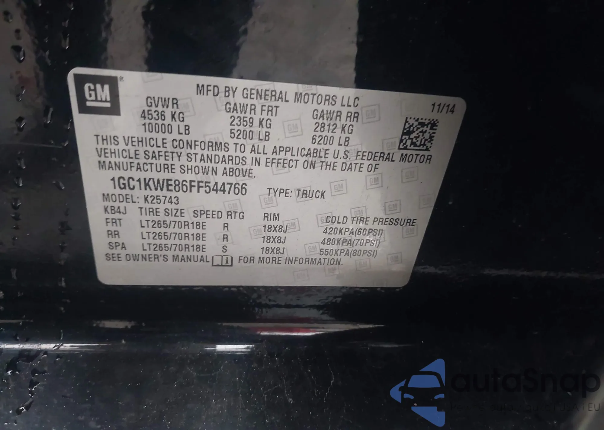 • VIN 1GC1KWE86FF544766