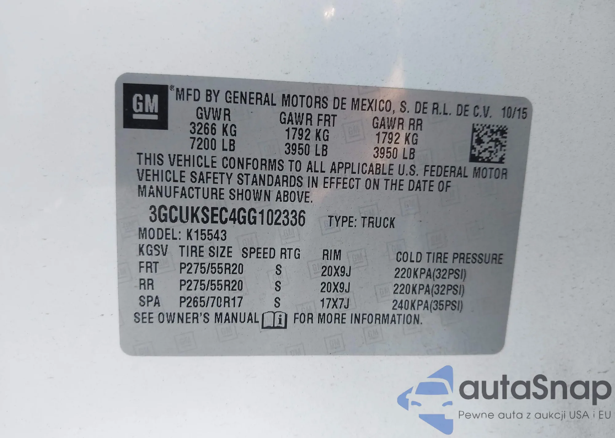 LOT: 44179343 VIN: 3GCUKSEC4GG102336