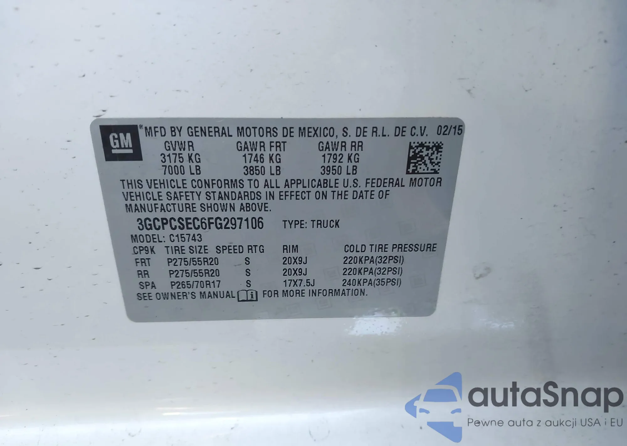 • VIN 3GCPCSEC6FG297106