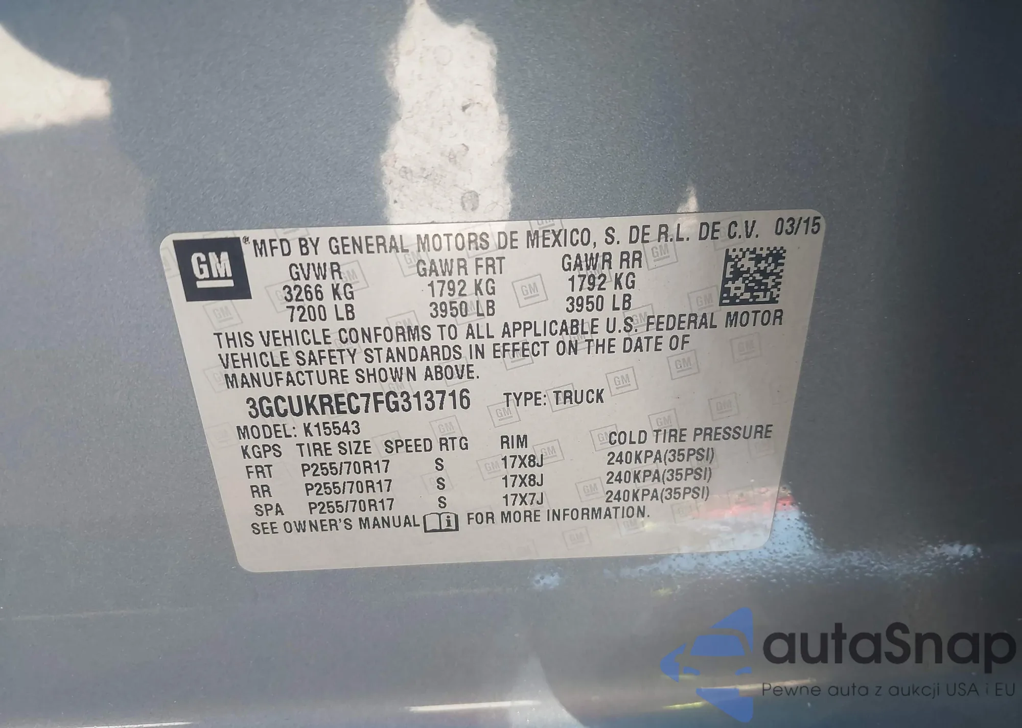 • VIN 3GCUKREC7FG313716