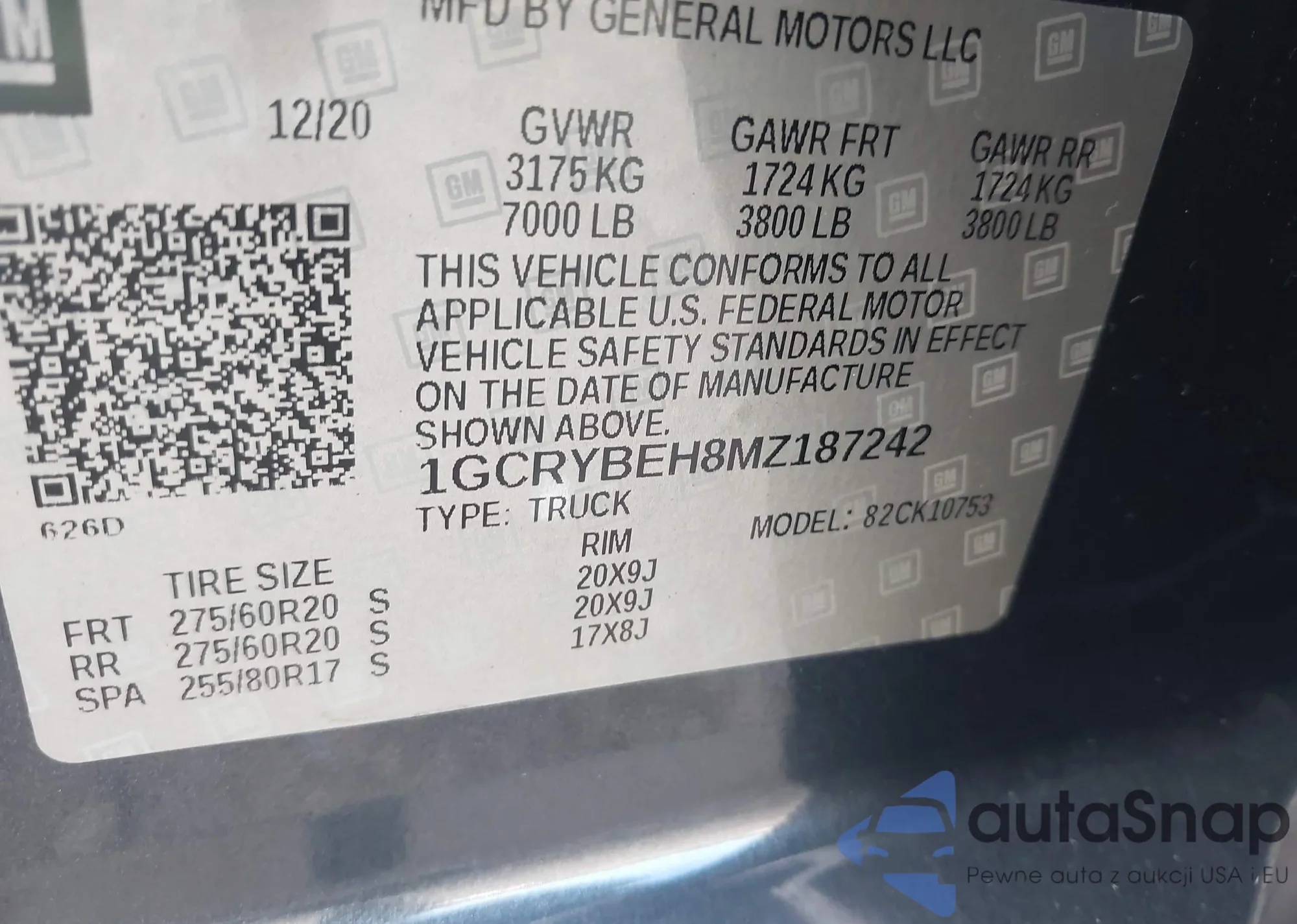 LOT: 82254355 VIN: 3GCNWAEH0MG268332