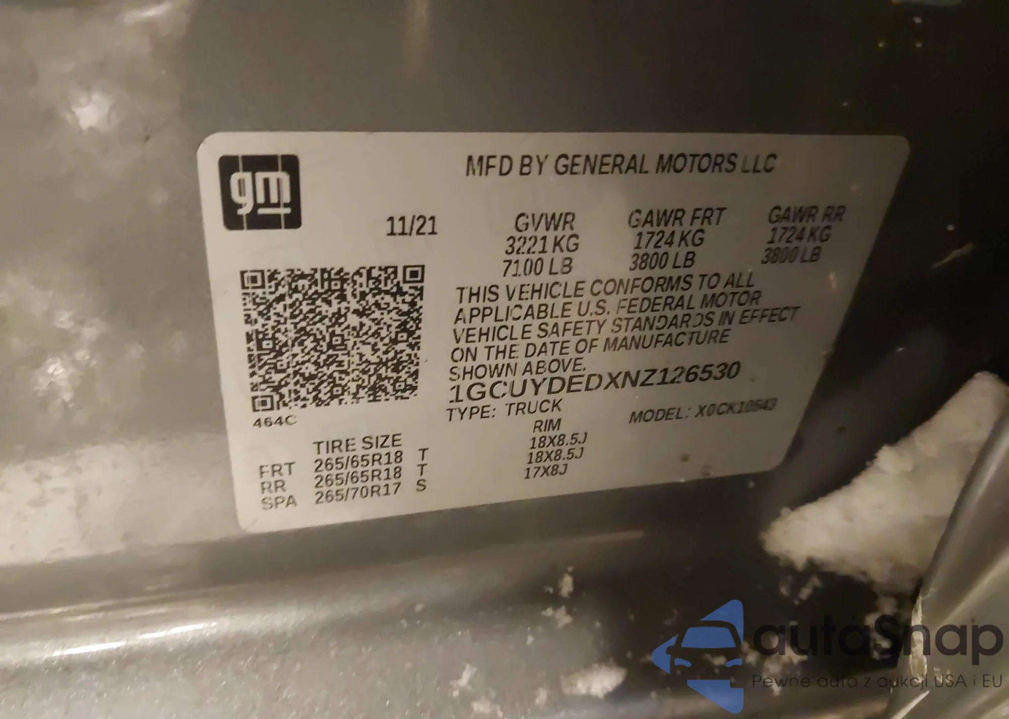 LOT: 44227248 VIN: 1GCPYFED8MZ317788
