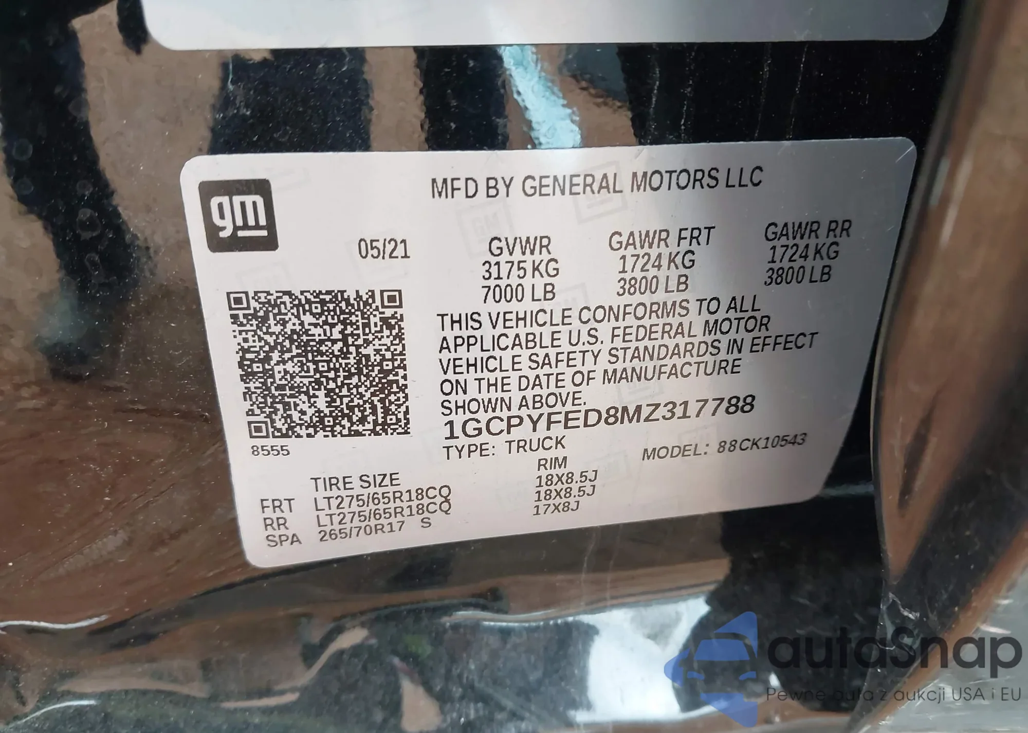 • VIN 1GCPYFED8MZ317788