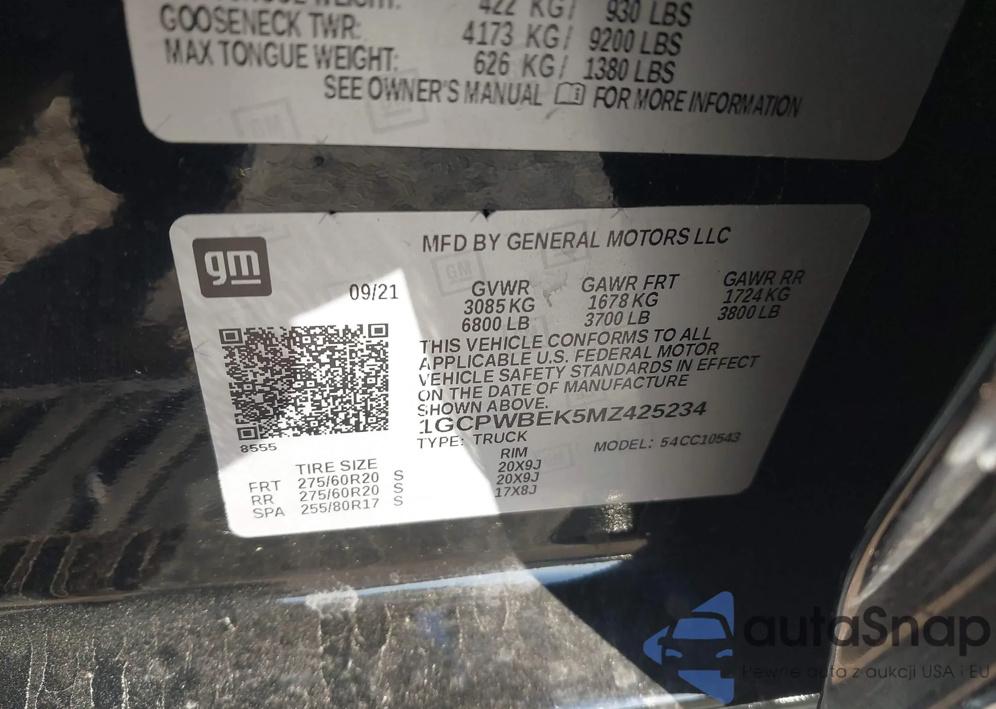 • VIN 3GCPYFED7MG262458