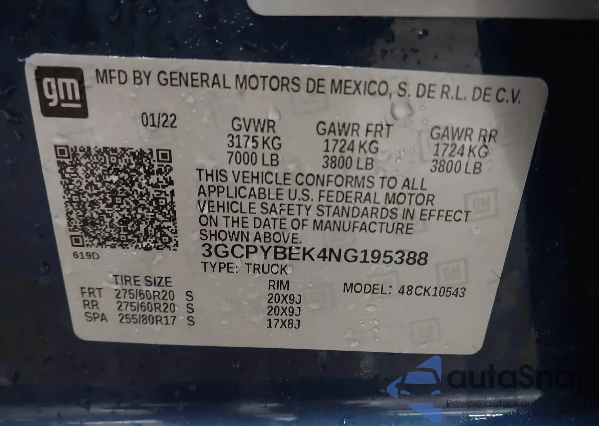 LOT: 44282056 VIN: 3GCPYBEK4NG195388