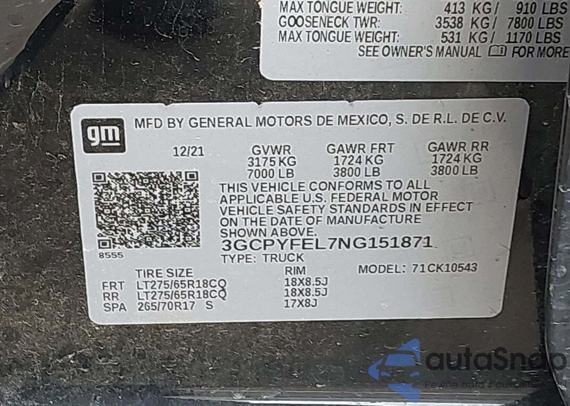 • VIN 3GCPYFEL7NG151871