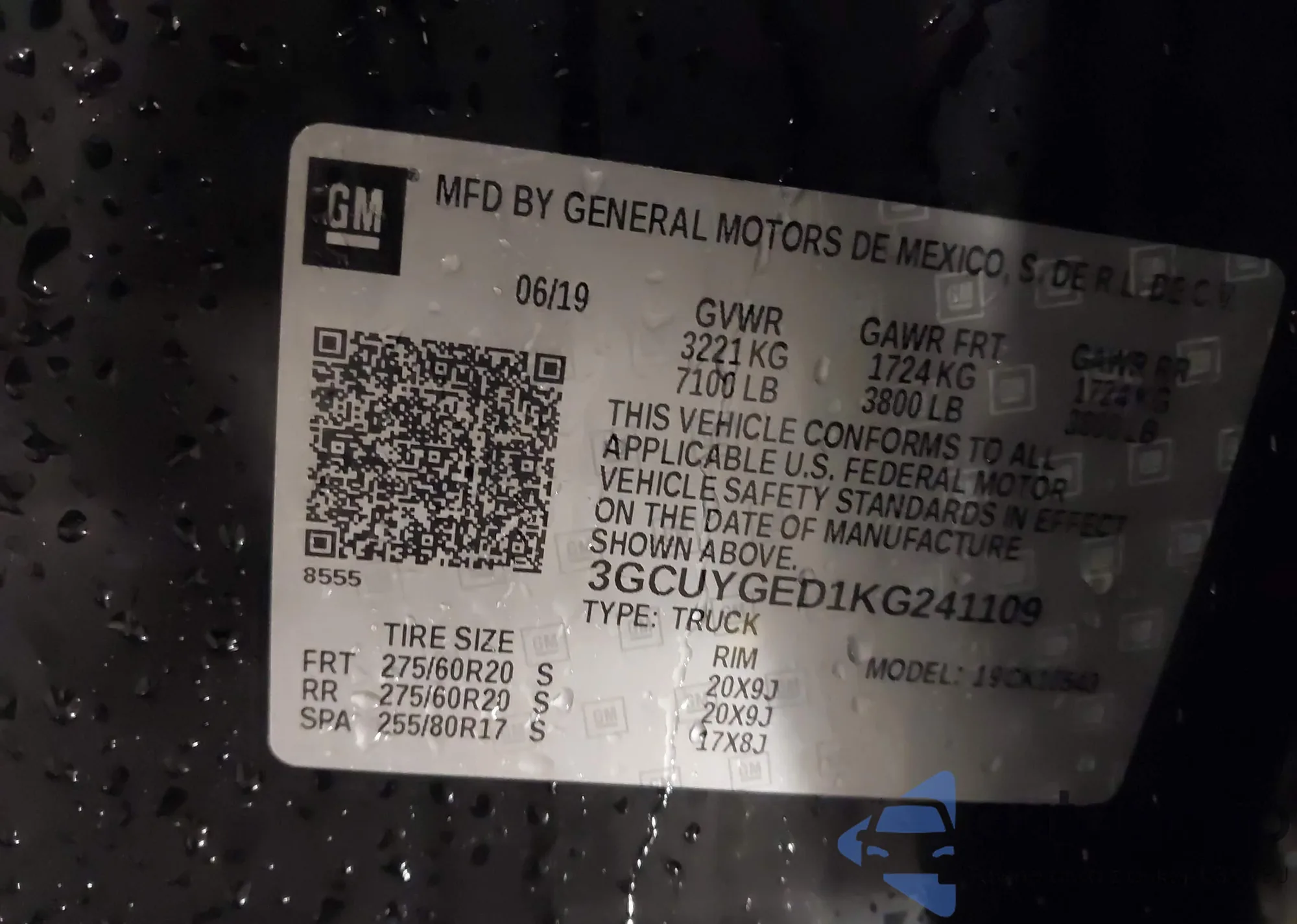 • VIN 3GCUYGED1KG241109