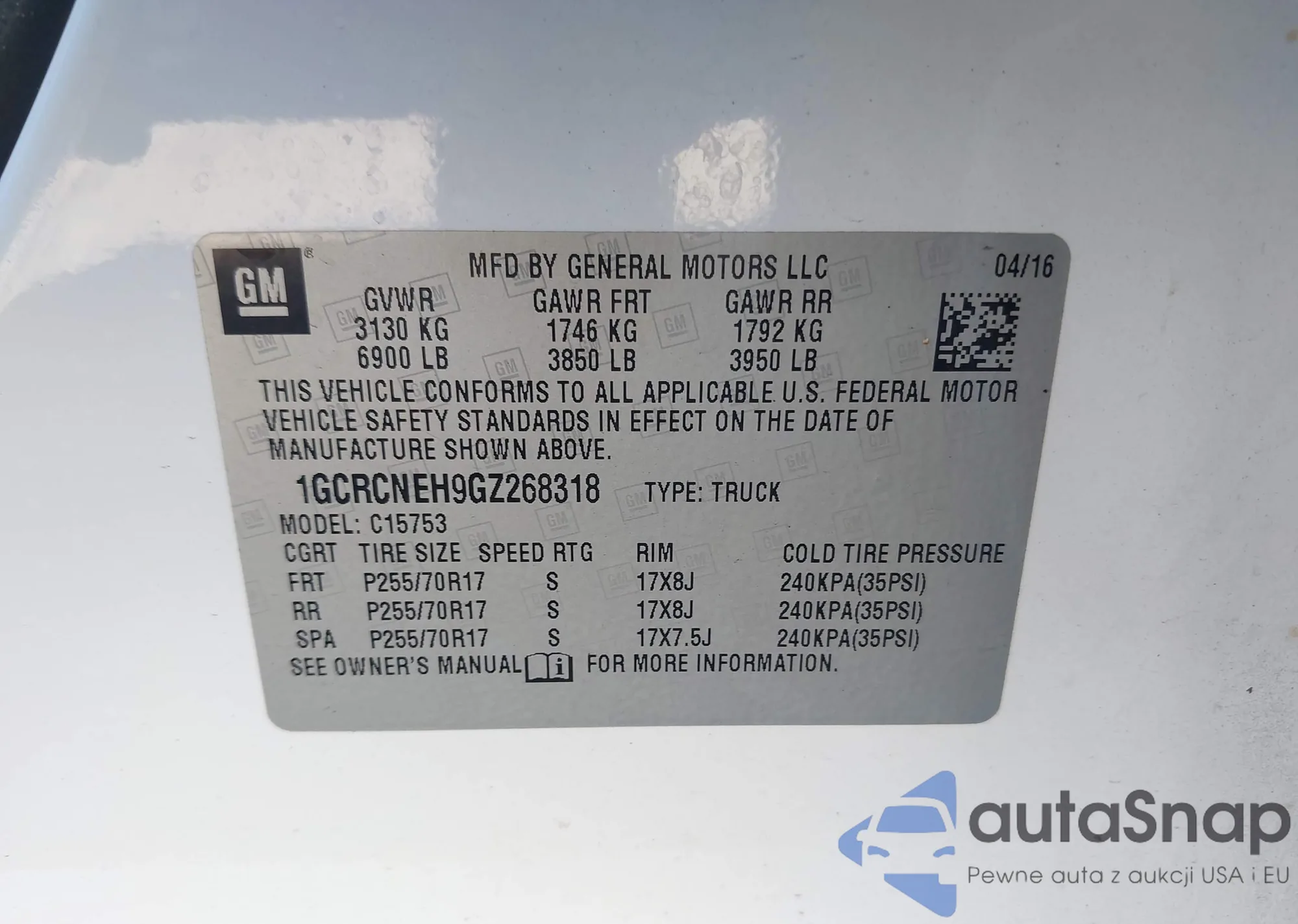 • VIN 1GCRCNEH9GZ268318