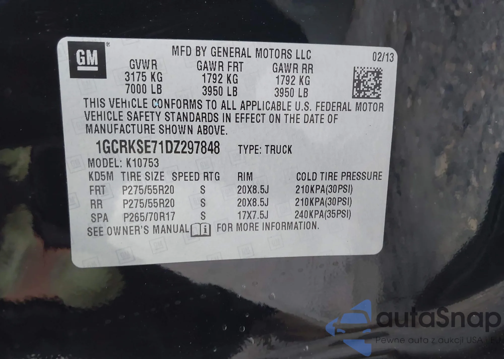 LOT: 43702946 VIN: 1GCRKSE71DZ297848