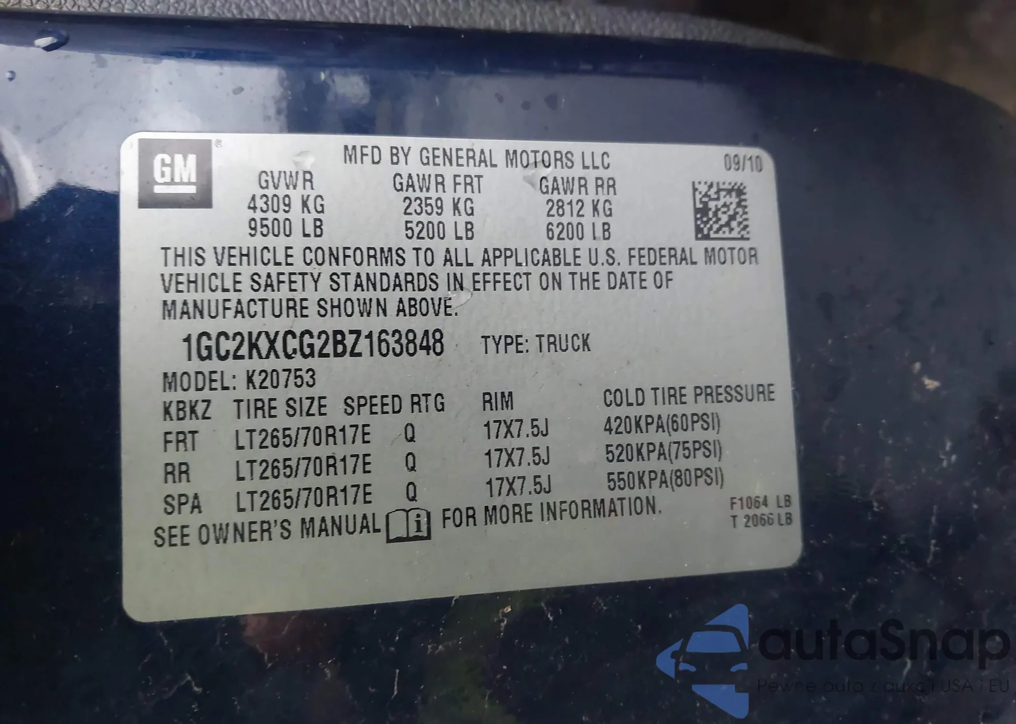 • VIN 1GC2KXCG2BZ163848