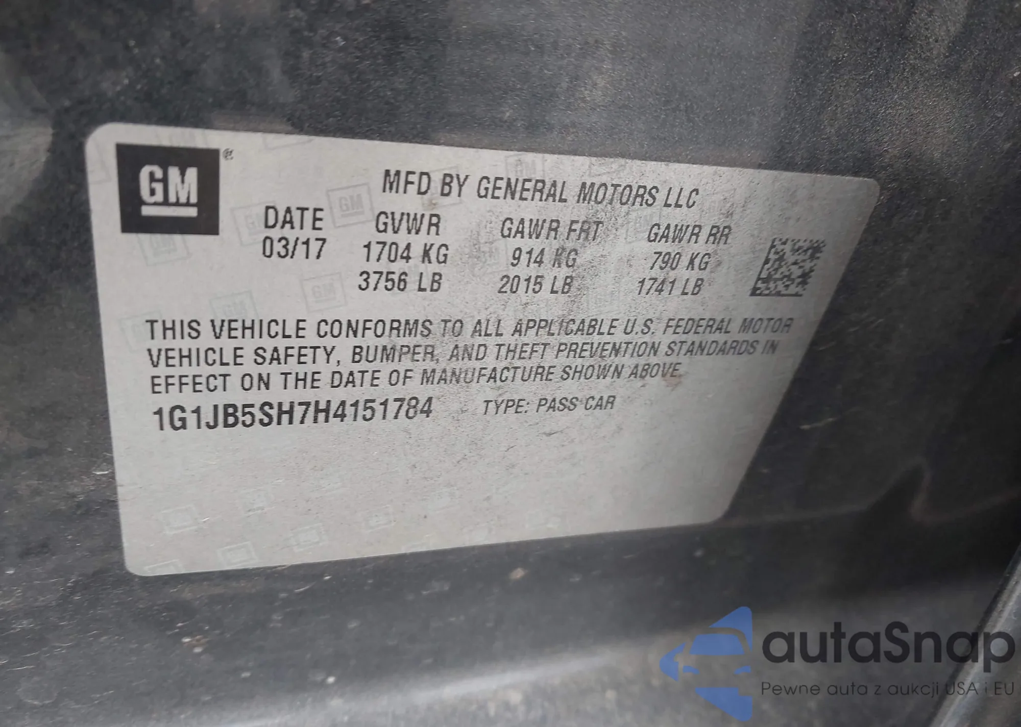 LOT: 44323165 VIN: 1G1JB5SH7H4151784