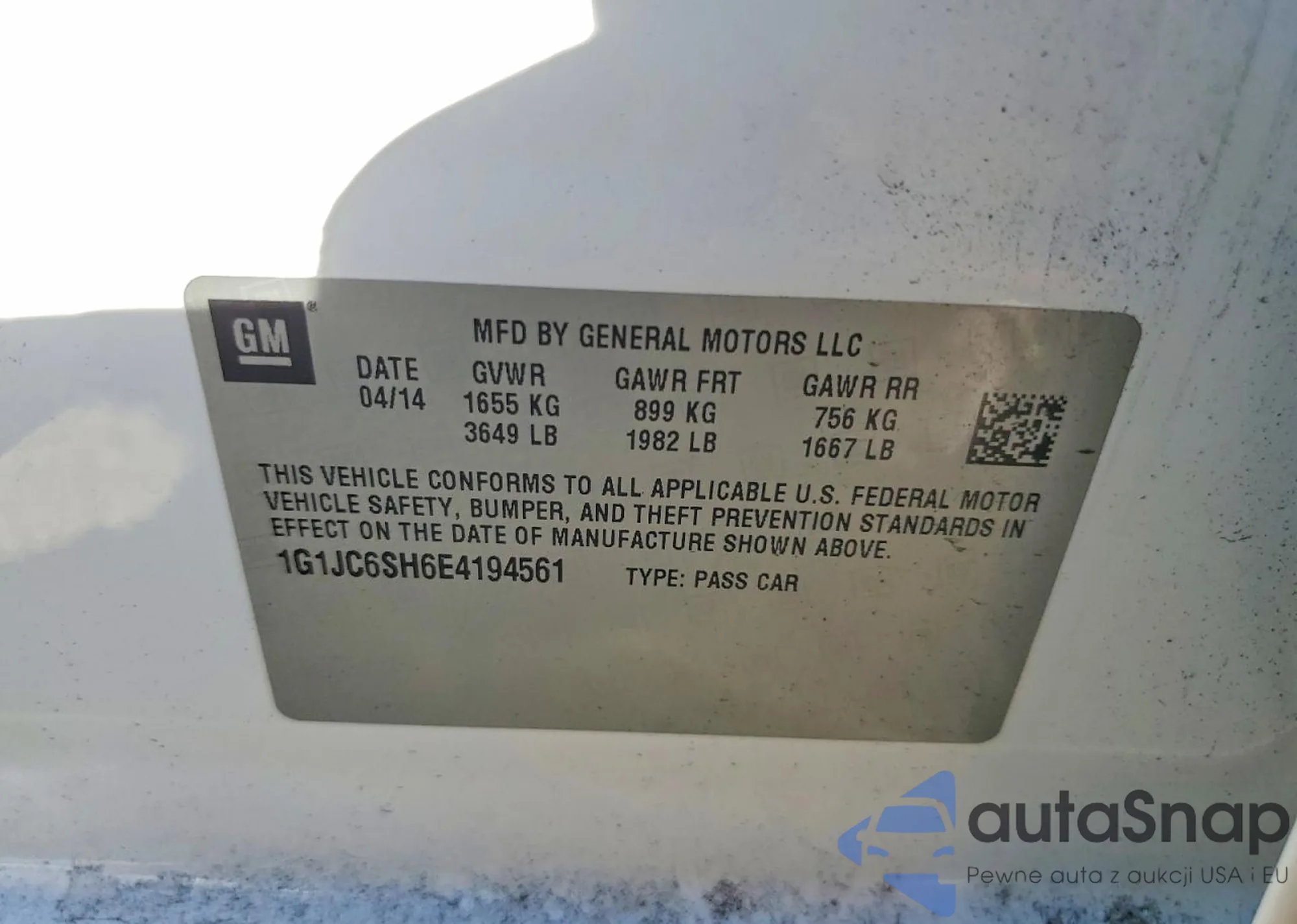 LOT: 75977435 VIN: 1G1JC6SH6E4194561