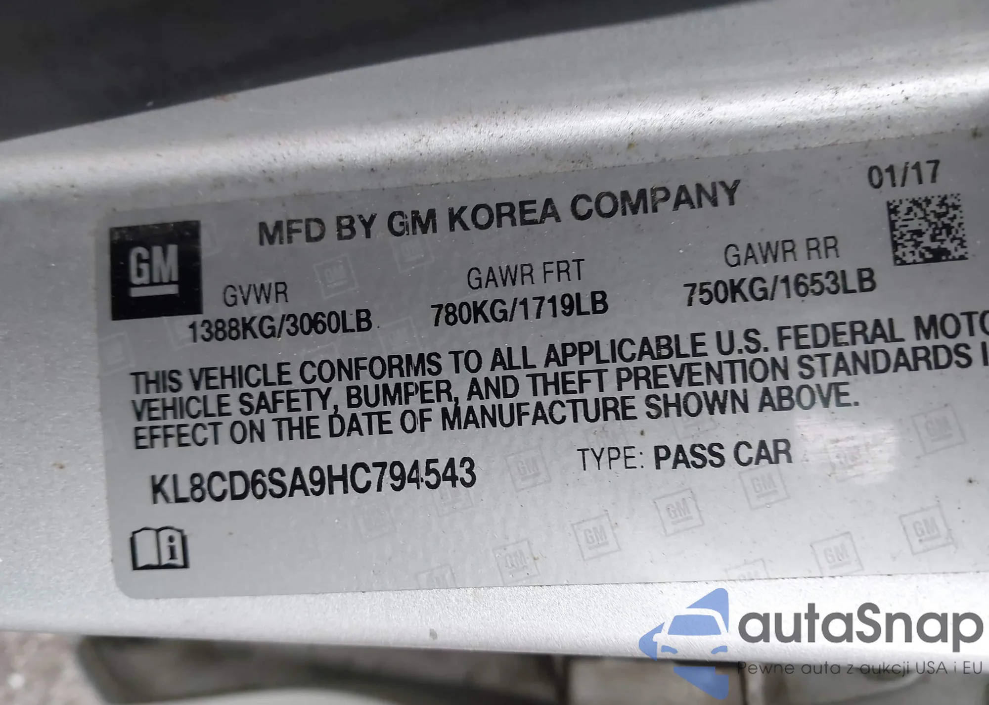• VIN KL8CD6SA9HC794543