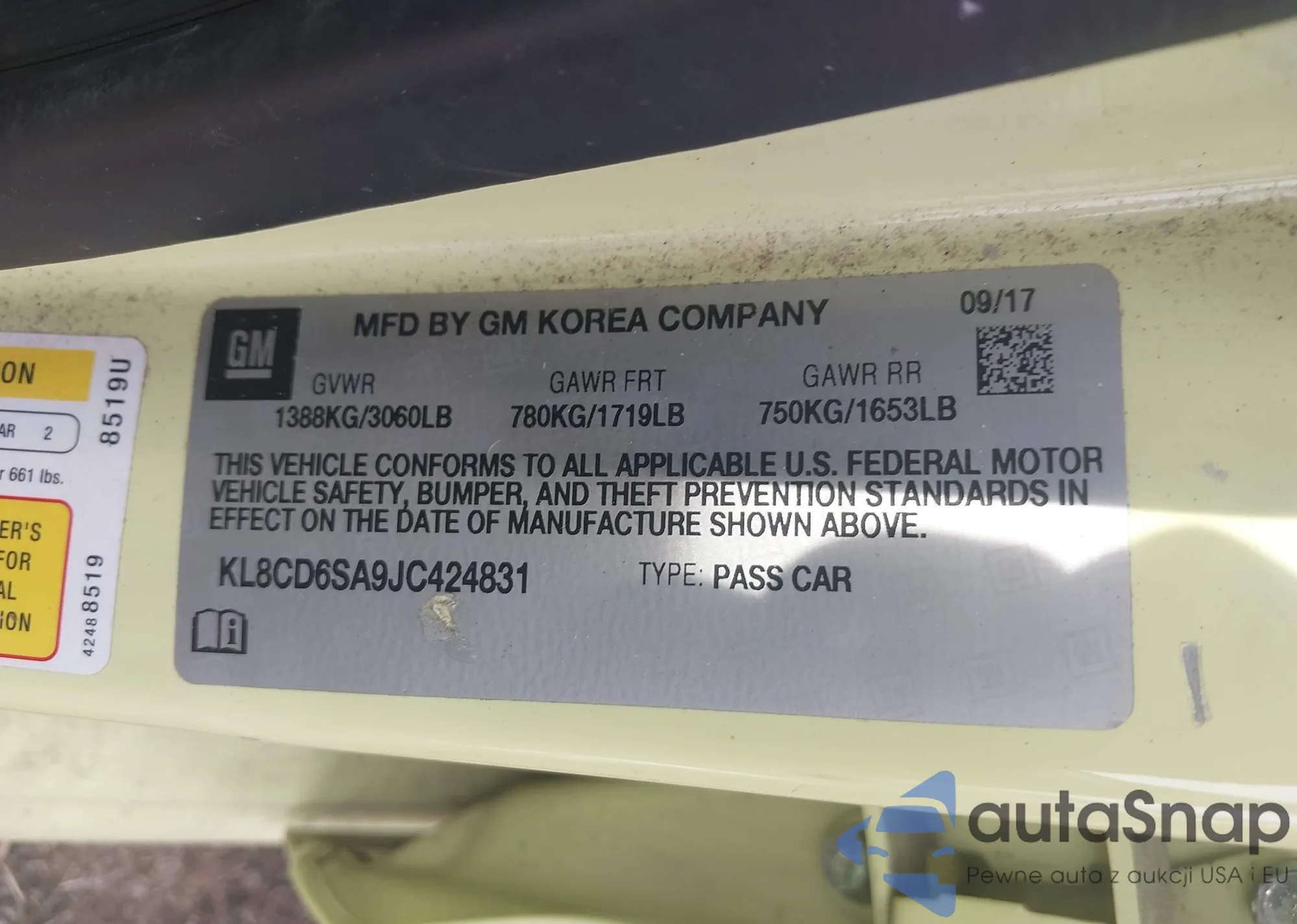 • VIN KL8CD6SA9JC424831